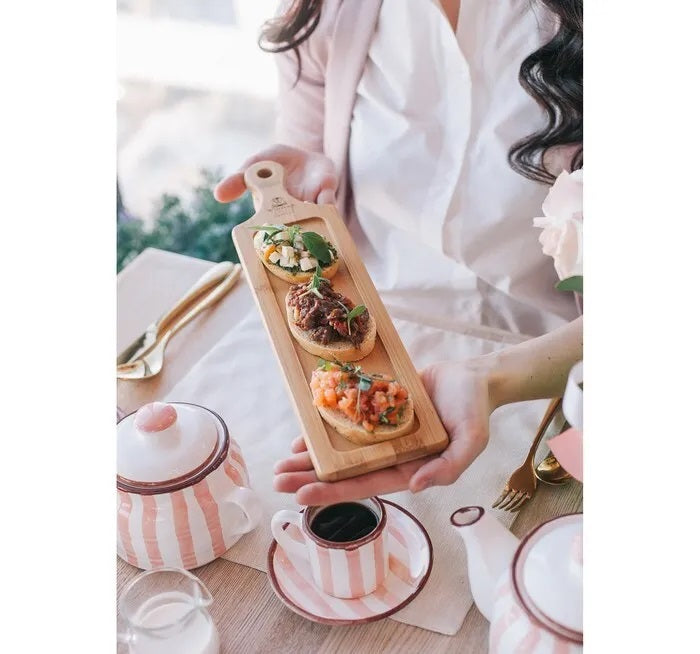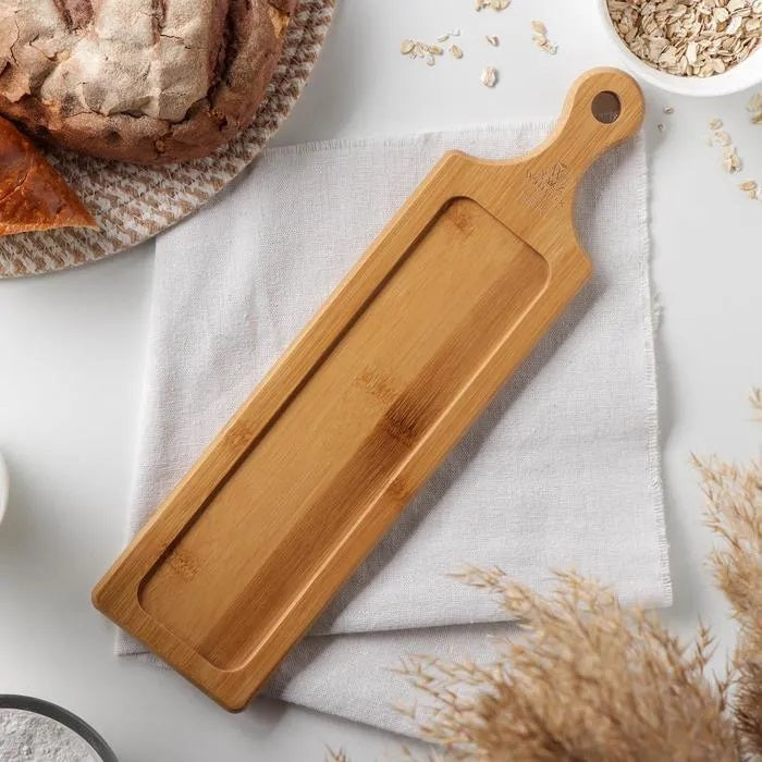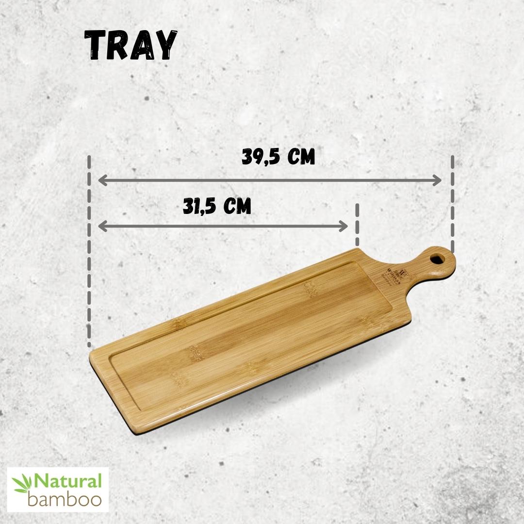 Mit den Maßen 39,5 x 11 cm eignet es sich hervorragend für das Servieren von Getränken, kleinen Snacks oder Fingerfood. Die rechteckige Form und die natürliche Optik machen das Tablett zu einem dekorativen und zugleich praktischen Accessoire für jeden Haushalt.