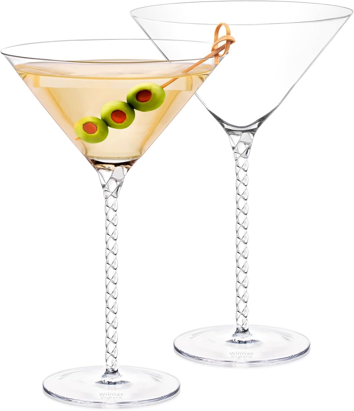 Das Wilmax Martini Gläser Set bietet zwei elegante Kristallgläser mit je 200 ml Fassungsvermögen. Diese Gläser sind perfekt ausbalanciert und ideal für Cocktails, Martinis oder andere feine Getränke.
