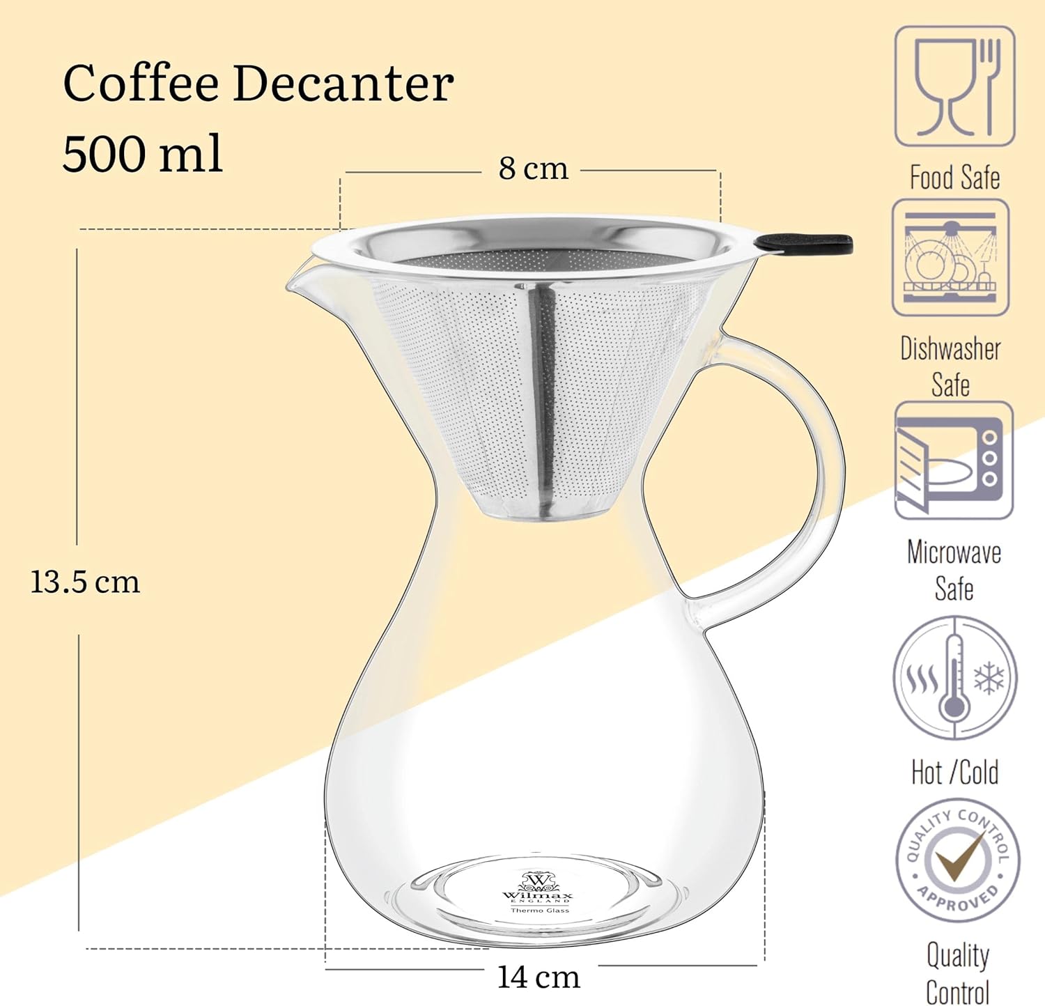 Der Wilmax Kaffee Dekanter ist die ideale Wahl für alle, die Wert auf eine schonende und stilvolle Kaffeezubereitung legen. Mit seinem hitzebeständigen Glas und dem praktischen Filter bietet er Funktionalität und Eleganz in einem.