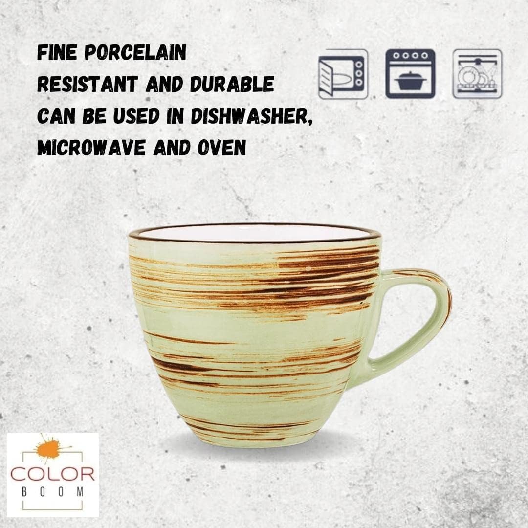 Met een inhoud van 110 ml zijn de kopjes ideaal voor de bereiding en het genot van Espresso. De schotels in stralend Turkoois, Geel en Groen brengen frisheid op tafel. De set is gemaakt van hoogwaardig Porselein en is vaatwasser- en magnetronbestendig voor eenvoudige reiniging.