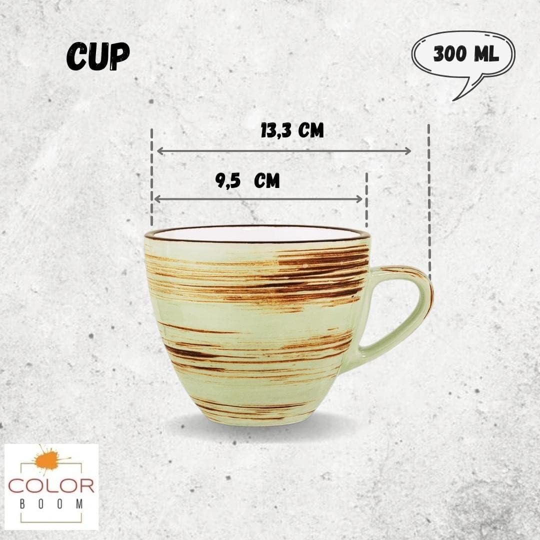 Met een royale inhoud van 300 ml bieden de kopjes veel ruimte voor uw favoriete drank. De schotels zijn gesorteerd in de kleuren Rood, Geel en Turkoois (of vergelijkbare tinten). Het robuuste Porselein is vaatwasser- en magnetronbestendig.