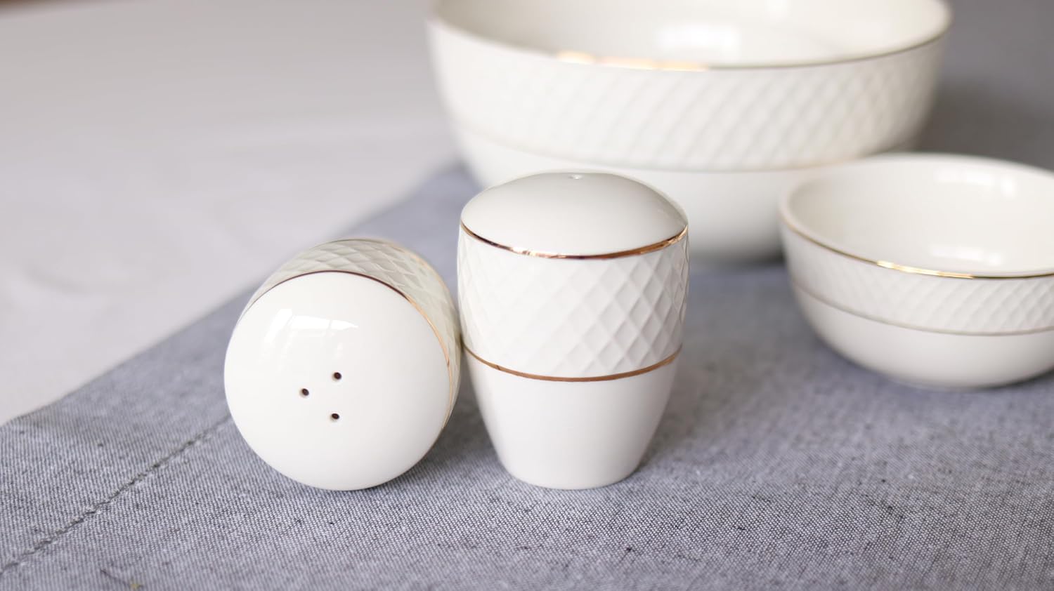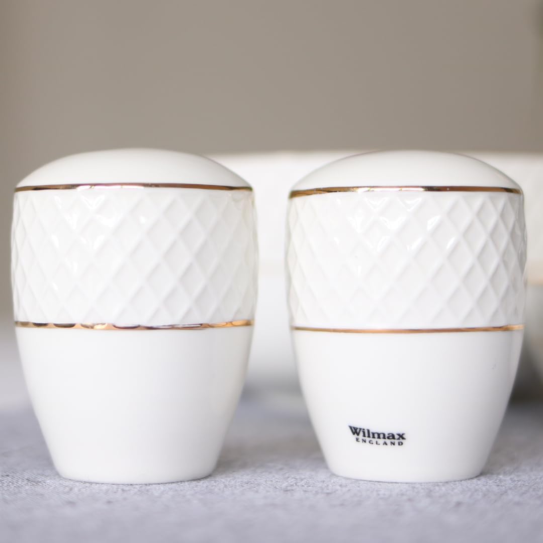 Das Wilmax Salz- & Pfefferstreuer Set aus der Diamond-Kollektion kombiniert zeitlose Eleganz mit höchster Qualität. Gefertigt aus edlem weißem Porzellan und verziert mit feinen Goldlinien, fügt sich dieses Set perfekt in jede gehobene Tischdekoration ein. Ob für festliche Anlässe, Restaurants oder den täglichen Gebrauch – dieses Set vereint Stil und Funktionalität.