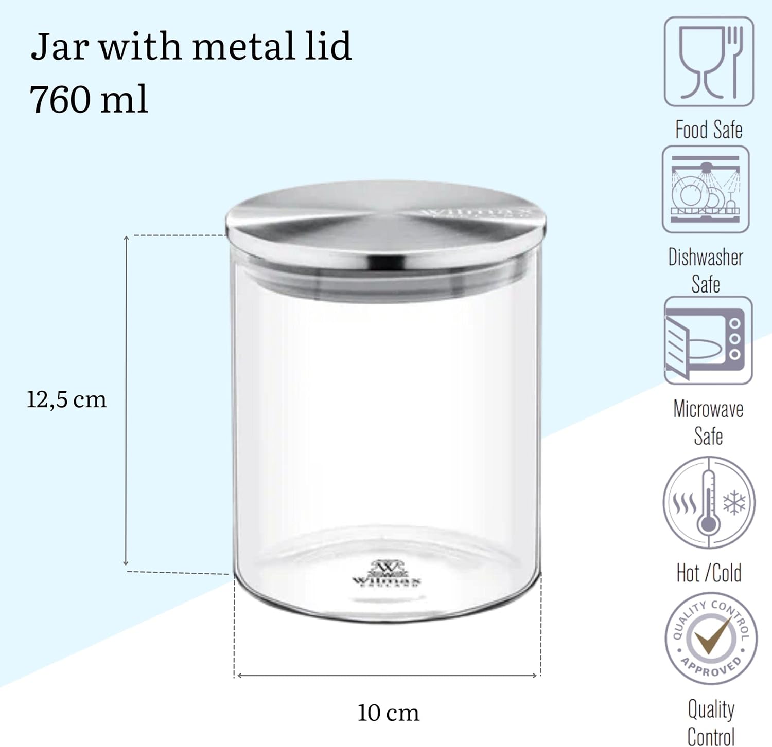 - 3x Wilmax Aufbewahrungsgläser 760 ml mit Edelstahldeckeln
