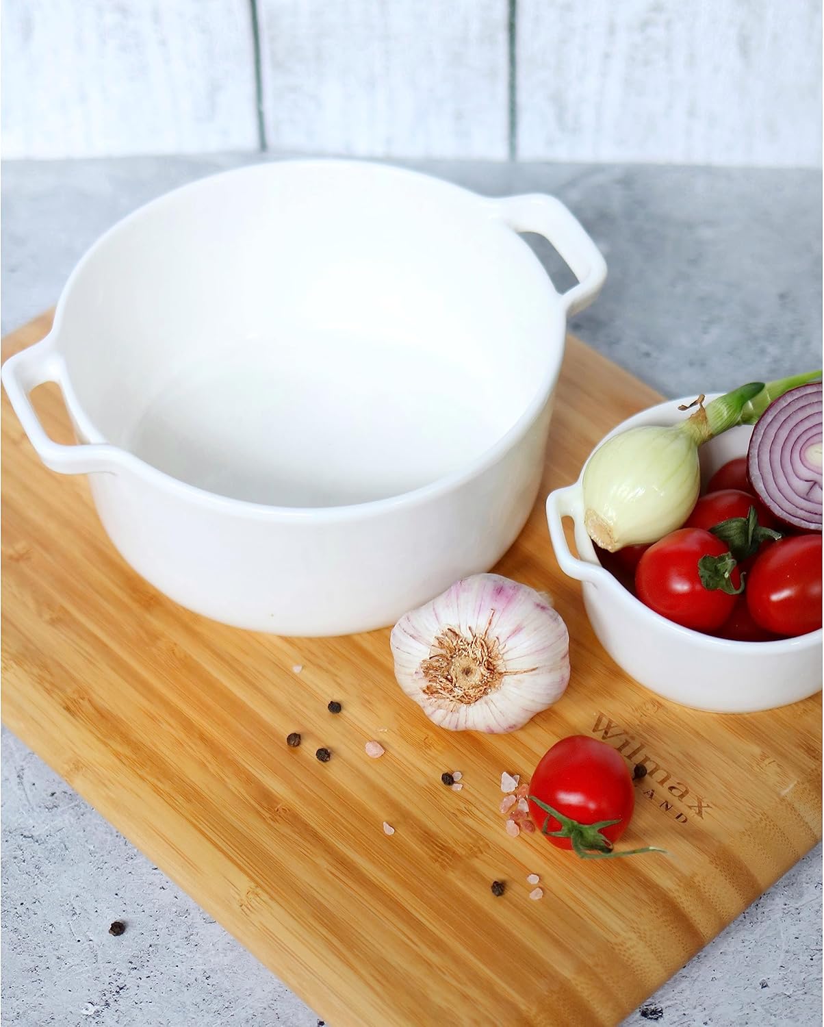 Die Wilmax Auflaufform mit Griffen bietet nicht nur eine stilvolle Tischpräsentation, sondern auch praktische Vielseitigkeit. Sie ist langlebig, einfach zu reinigen und ideal für die Zubereitung von Ofengerichten oder das Servieren von Beilagen.