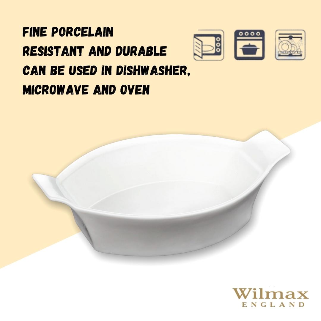 Die Wilmax Backform mit 22 cm Durchmesser bietet die ideale Größe für vielseitige Einsatzmöglichkeiten in der Küche. Die ovale Form eignet sich perfekt für Aufläufe, Gratins, Desserts oder zum stilvollen Servieren von Speisen.