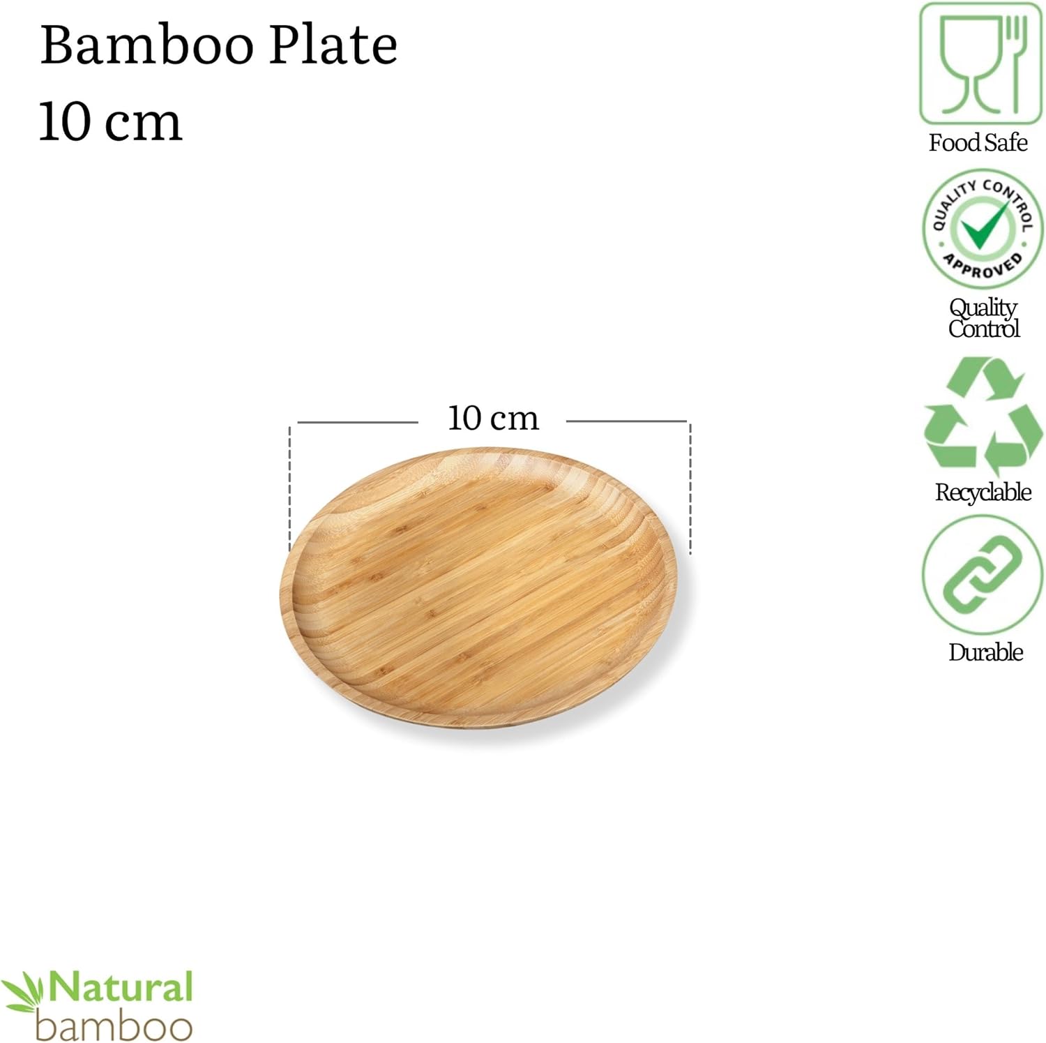 Wilmax Bambus Teller, 10 cm Durchmesser, aus natürlichem Bambus WL-771028/A