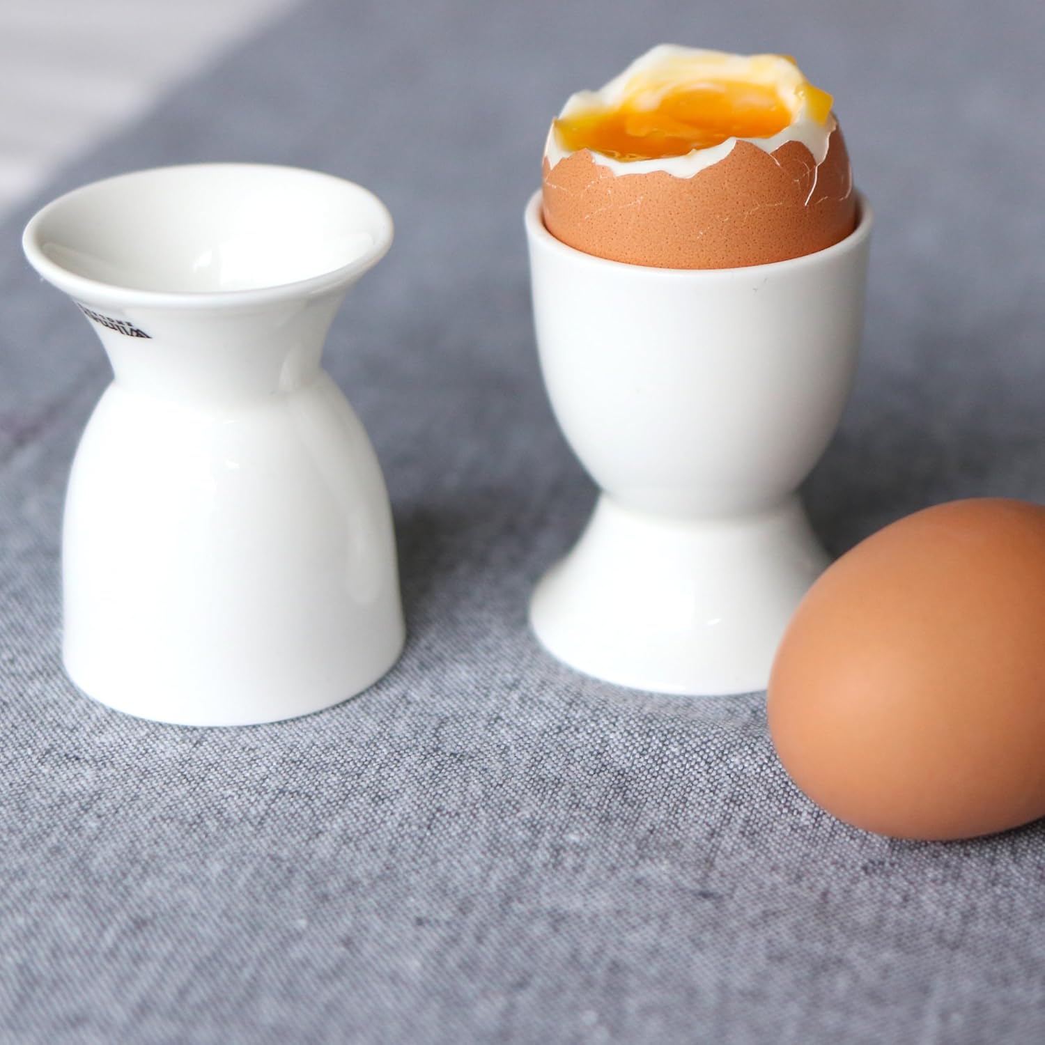 Mit dem Wilmax Eierbecher aus feinem Porzellan servieren Sie weiche oder harte Eier auf elegante Weise. Der Eierbecher hält das Ei aufrecht, sodass Sie den oberen Teil leicht entfernen und genießen können.