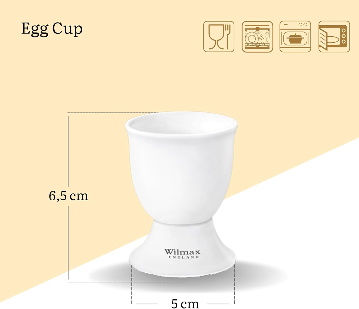 Das Wilmax Eierbecher Set besteht aus sechs eleganten Eierständern aus hochwertigem weißem Porzellan. Die Becher haben eine praktische Größe von 5 x 6.5 cm und bieten damit die perfekte Passform für Ihre Frühstückseier.