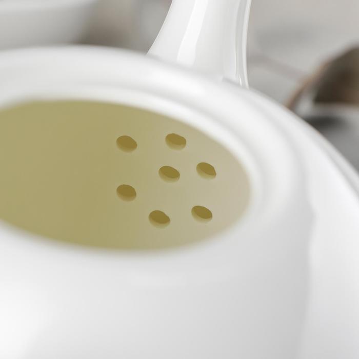 Die Teekanne verfügt über einen integrierten Filter am Ausgießer, der Teeblätter zurückhält und einen optimalen Teegenuss ermöglicht.