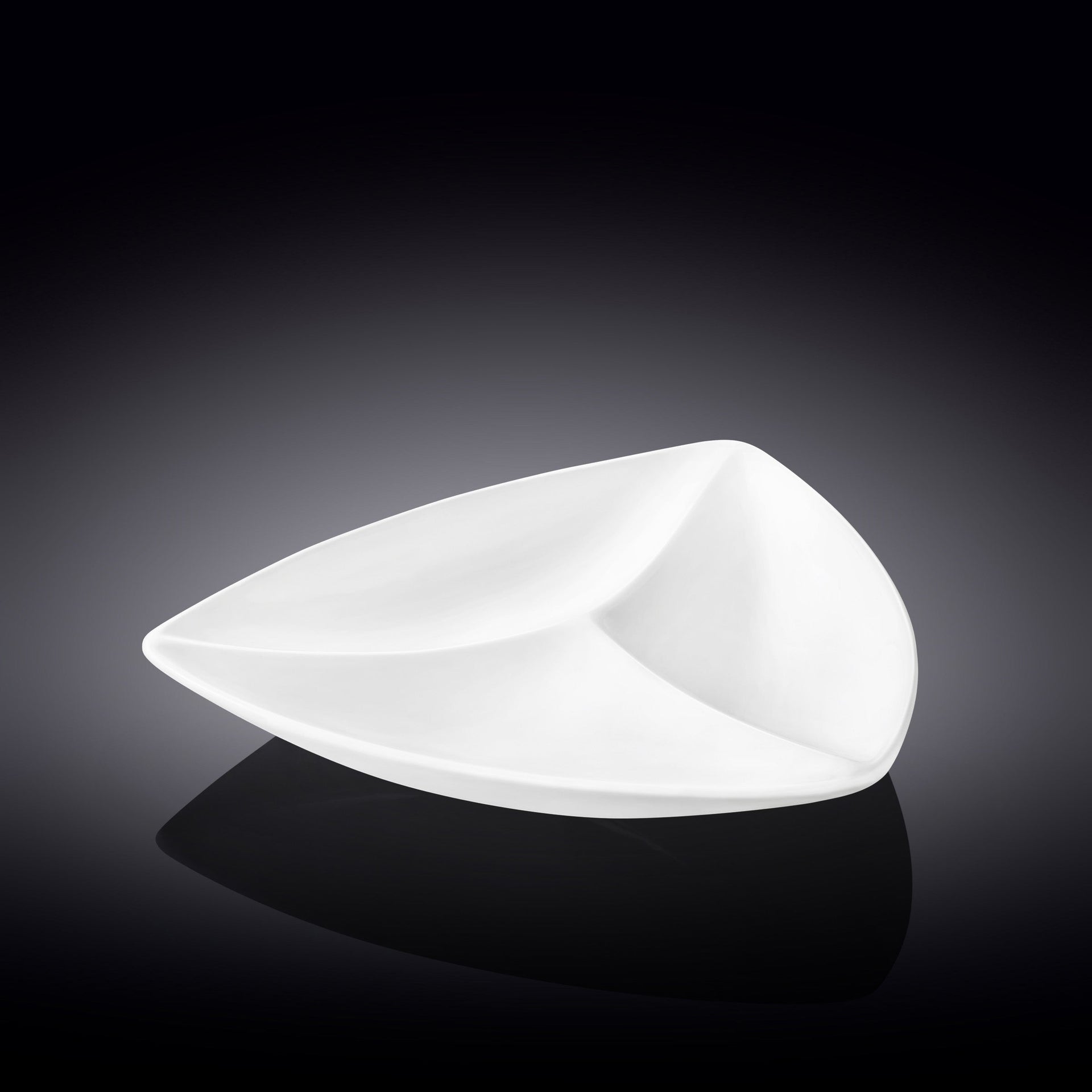 Die Wilmax geteilte dreieckige Schale WL-992585/A verbindet modernes Design mit hoher Funktionalität. Hergestellt aus hochwertigem, weißem Porzellan, besticht sie durch ihre elegante dreieckige Form mit drei separaten Fächern.