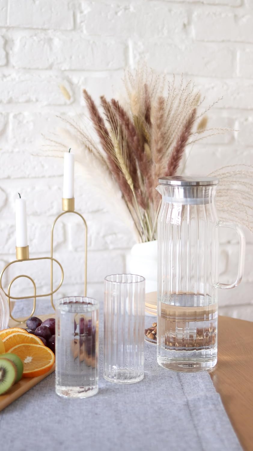 Dieses stilvolle Gläser- & Karaffen-Set bietet eine hochwertige Kombination aus Funktionalität und modernem Design – ideal für den täglichen Gebrauch und stilvolles Servieren.