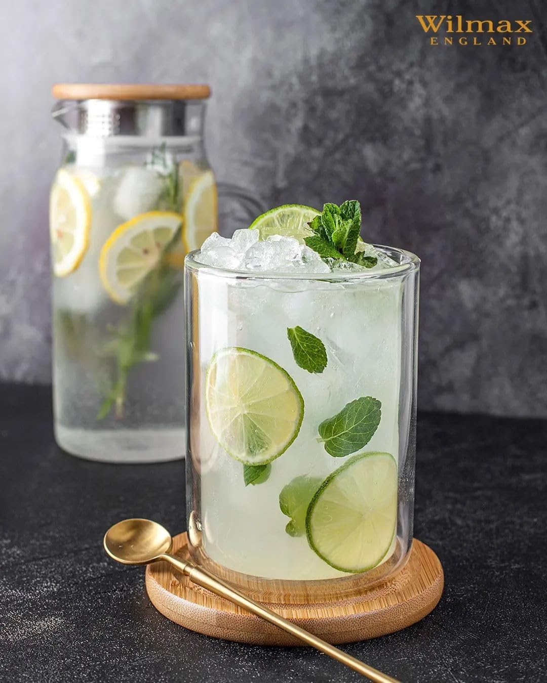 Das Wilmax Glas mit Doppelwand aus der Wilmax ThermoGlass-Kollektion überzeugt durch sein modernes Design und seine funktionale Isolierung. Die doppelwandige Struktur hält heiße Getränke länger warm und verhindert ein Überhitzen der Außenwand. Gleichzeitig bleiben Kaltgetränke länger erfrischend kühl.