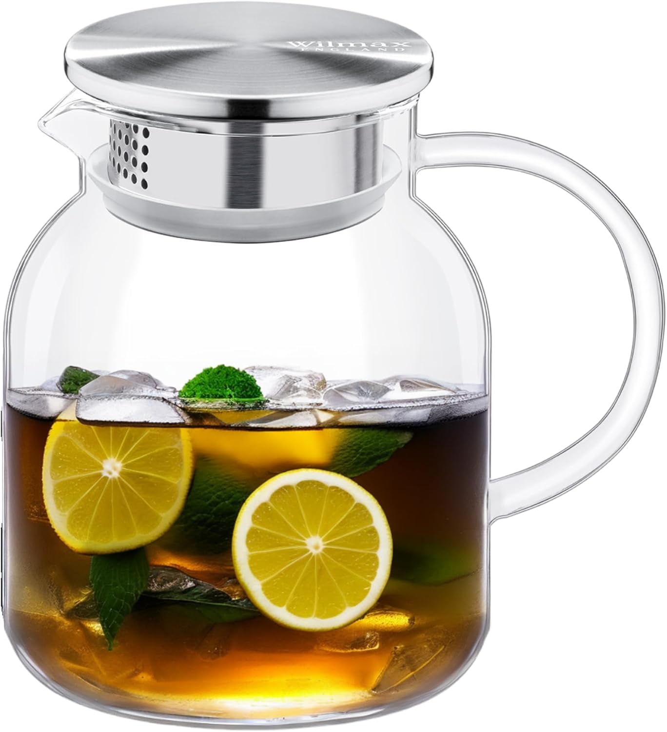 Wilmax Borosilikat Glas Karaffe mit Edelstahl-Deckel 1000 ml – WL-888213/A