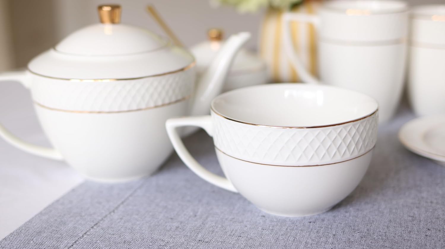 - Material: Hochwertiges Porzellan mit Goldverzierung