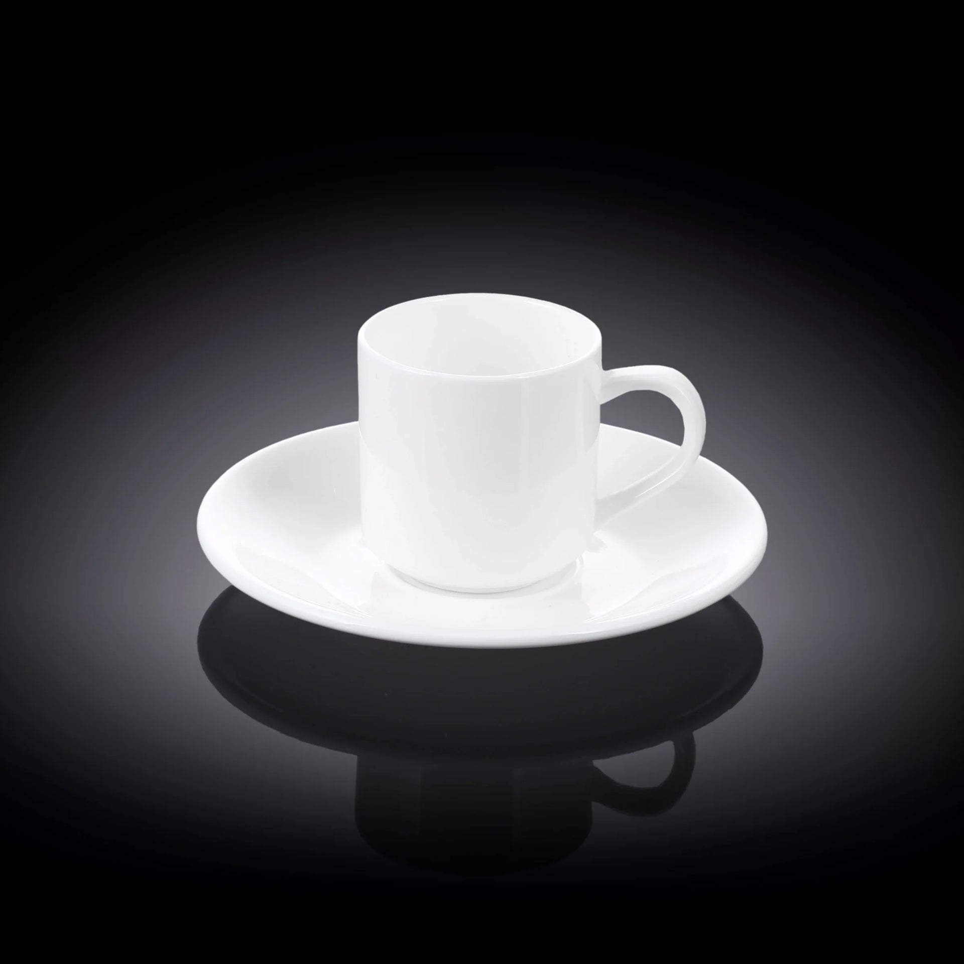 De Wilmax Koffie Kopjes Set met Schotels (WL-993007/2C) is de perfecte keuze voor stijlvol Espresso-genot. De 2-delige set bestaat uit één kopje en één bijpassende schotel van hoogwaardig, stralend wit Porselein.