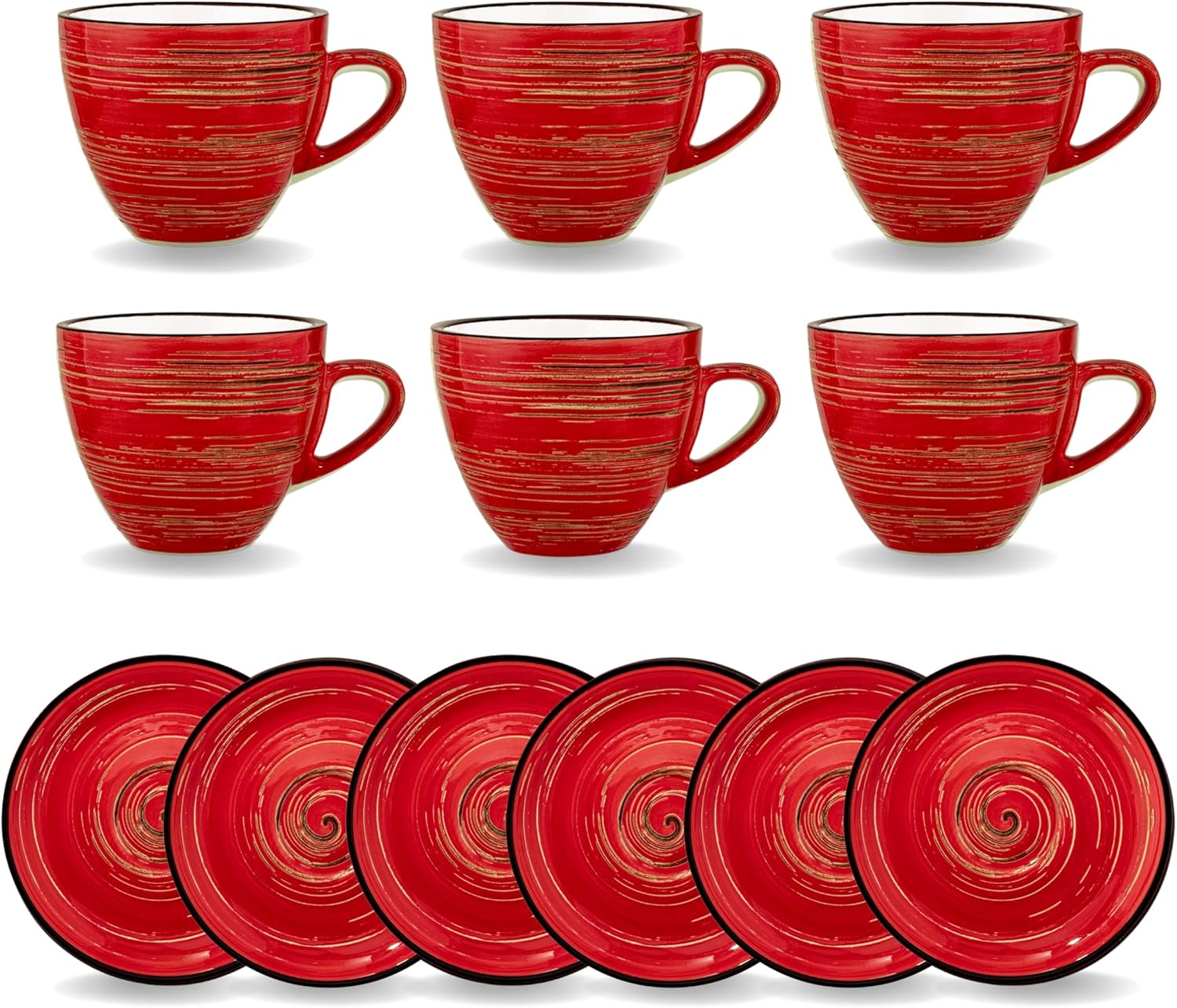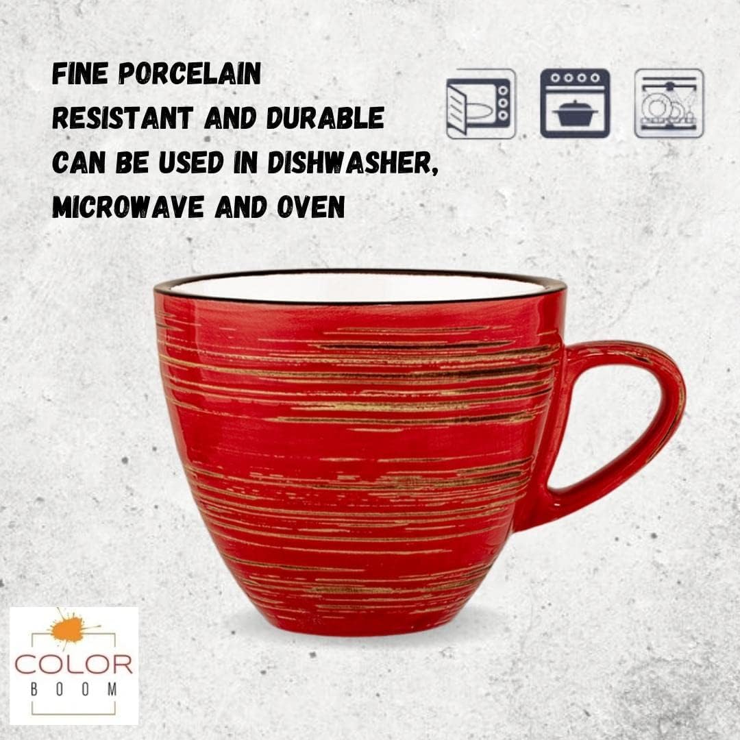 Deze set biedt de perfecte mix van klassieke elegantie en levendige kleuren. De krachtige Rode tint maakt het een blikvanger op elke tafel en brengt een goed humeur in elke koffiepauze.