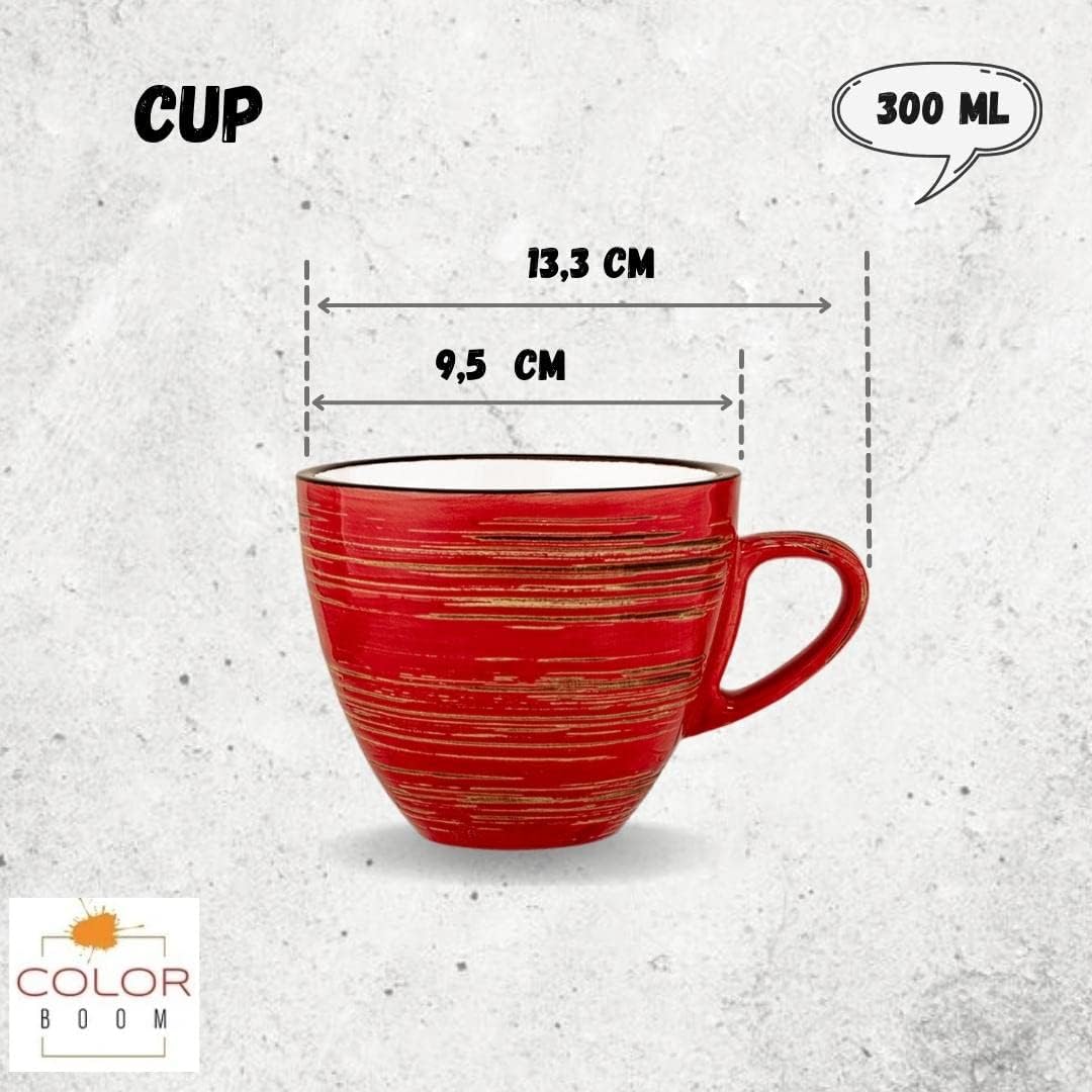De schotels zijn uitgevoerd in de kleuren Turkoois, Geel en Groen. De kopjes hebben een inhoud van 220 ml en zijn ideaal voor middelgrote porties koffie of thee. Het robuuste Porselein is vaatwasser- en magnetronbestendig.