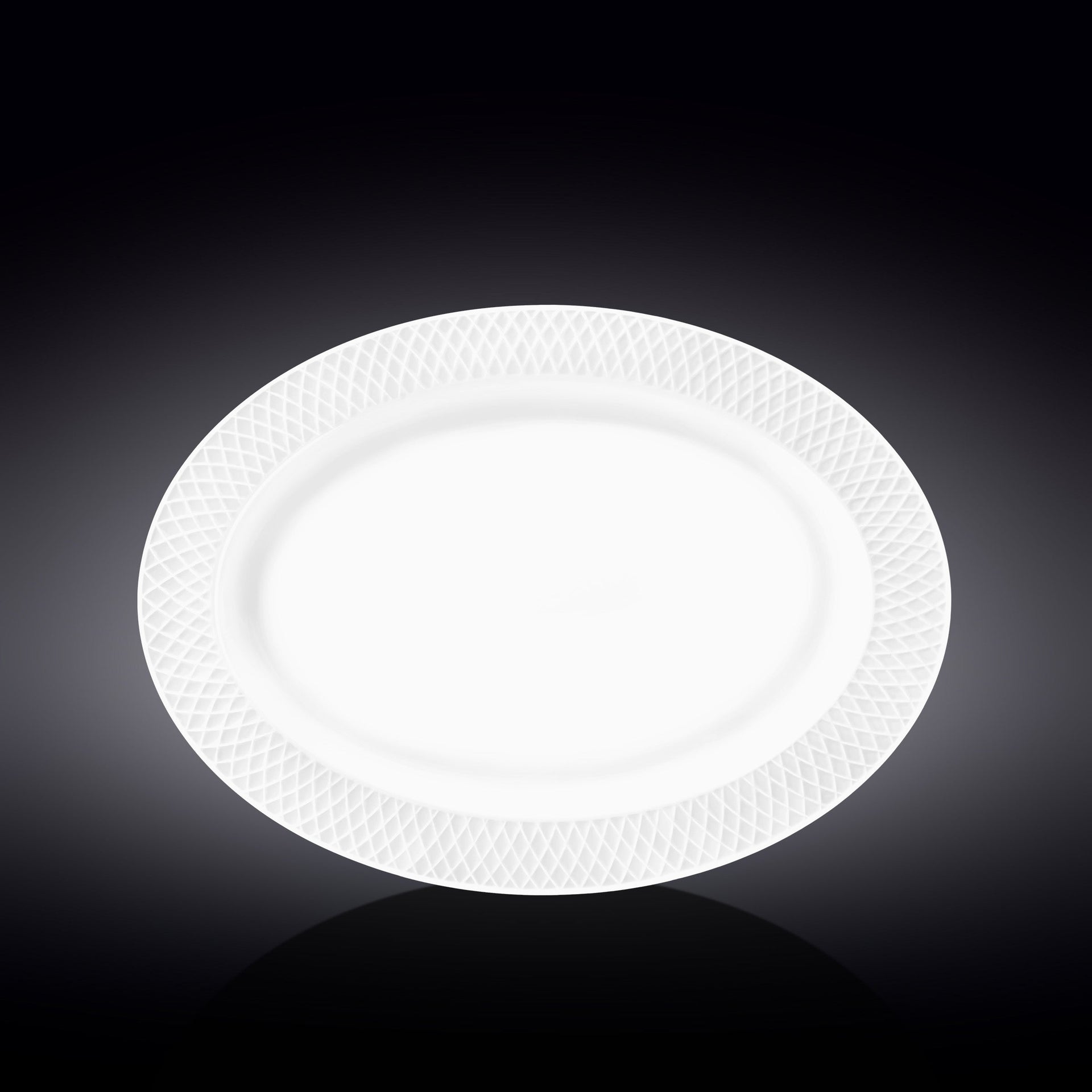 Der Wilmax Ovaler Servierteller WL-880101117/A aus der exklusiven Diamond-Kollektion zeichnet sich durch seine raffinierte Form und das dezente, diamantstrukturierte Randmuster aus. Hergestellt aus feinem weißen Porzellan, bietet er eine elegante und langlebige Serviermöglichkeit für verschiedene Speisen.