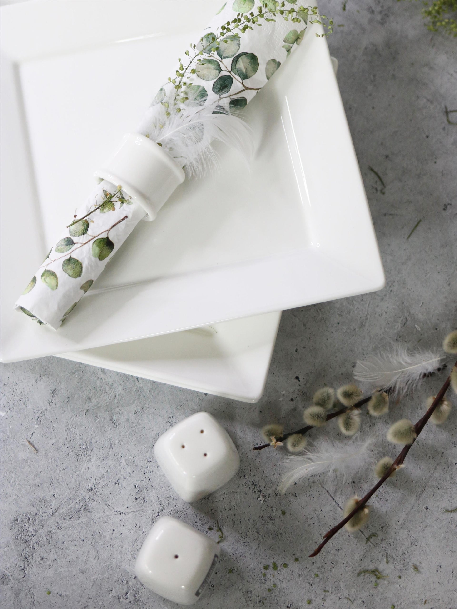 - Zeitloses Design: Klassisches weißes, quadratisches Design für vielseitige Einsatzmöglichkeiten