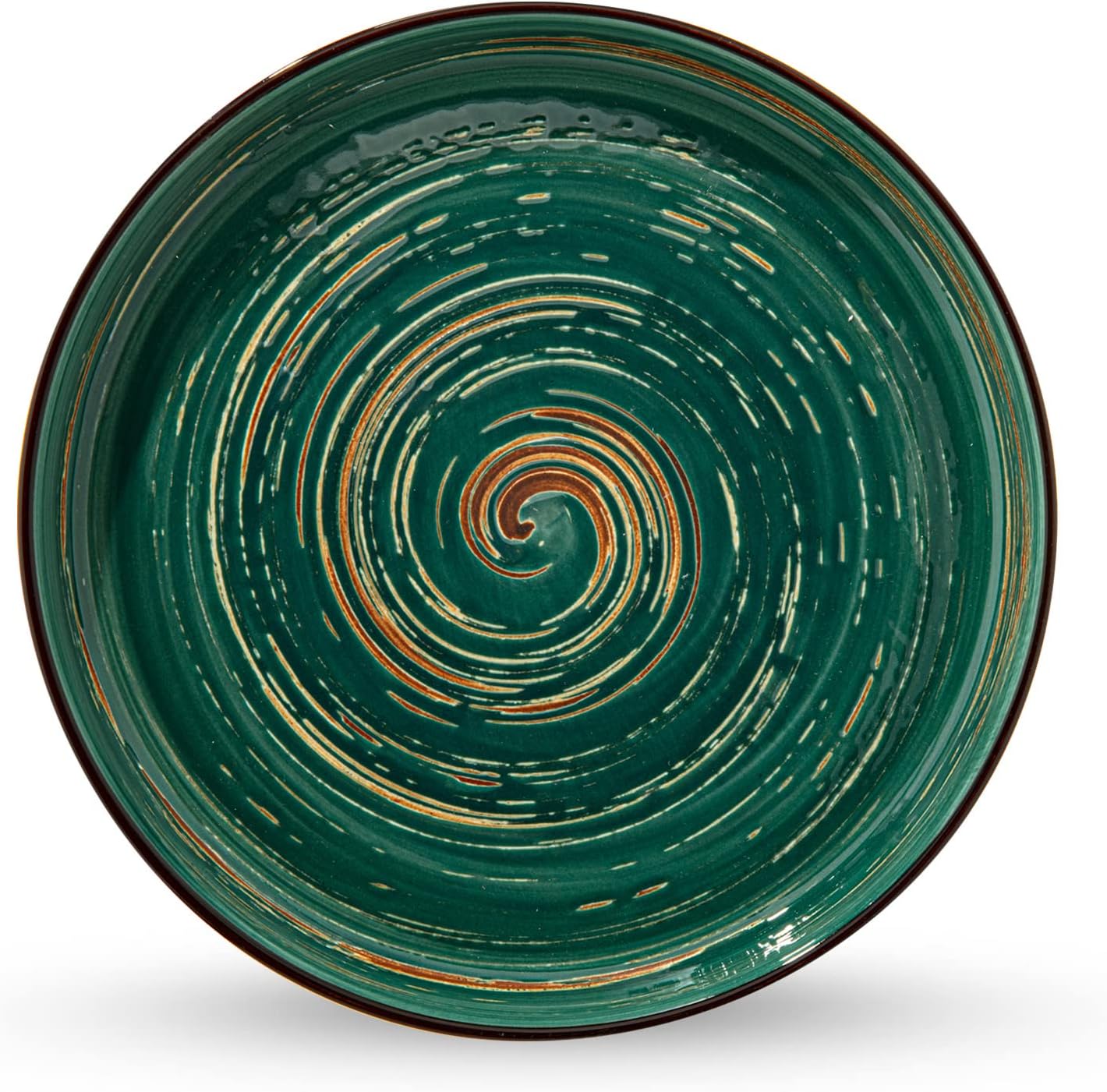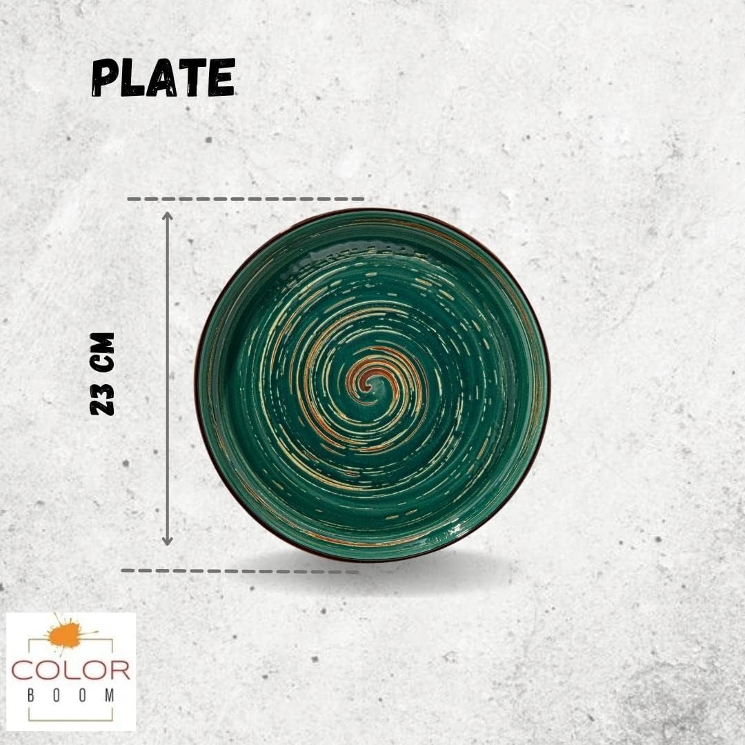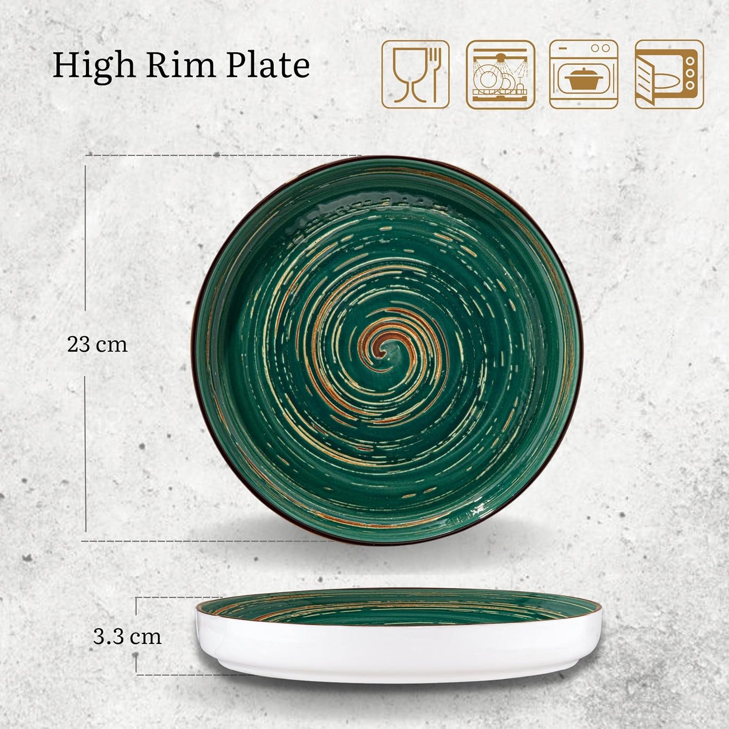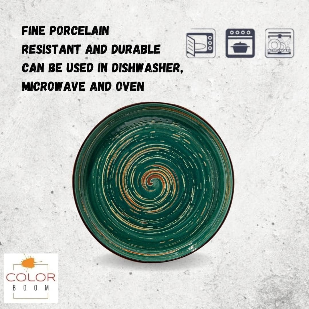 Hergestellt aus hochwertigem Porzellan, ist dieser Teller nicht nur robust, sondern auch ein eleganter Hingucker auf jeder Tafel. Die moderne, grüne Farbgebung passt sowohl zu einem formellen Dinner als auch zu einem entspannten Abendessen.