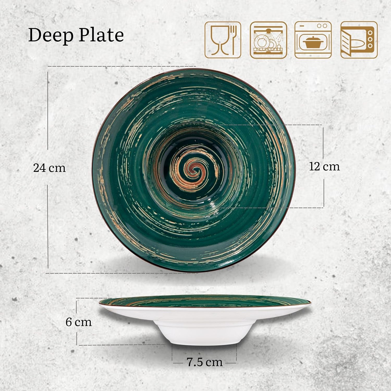 Wilmax Porzellanteller Grün, 24 cm, runder Tiefteller WL-669525/A