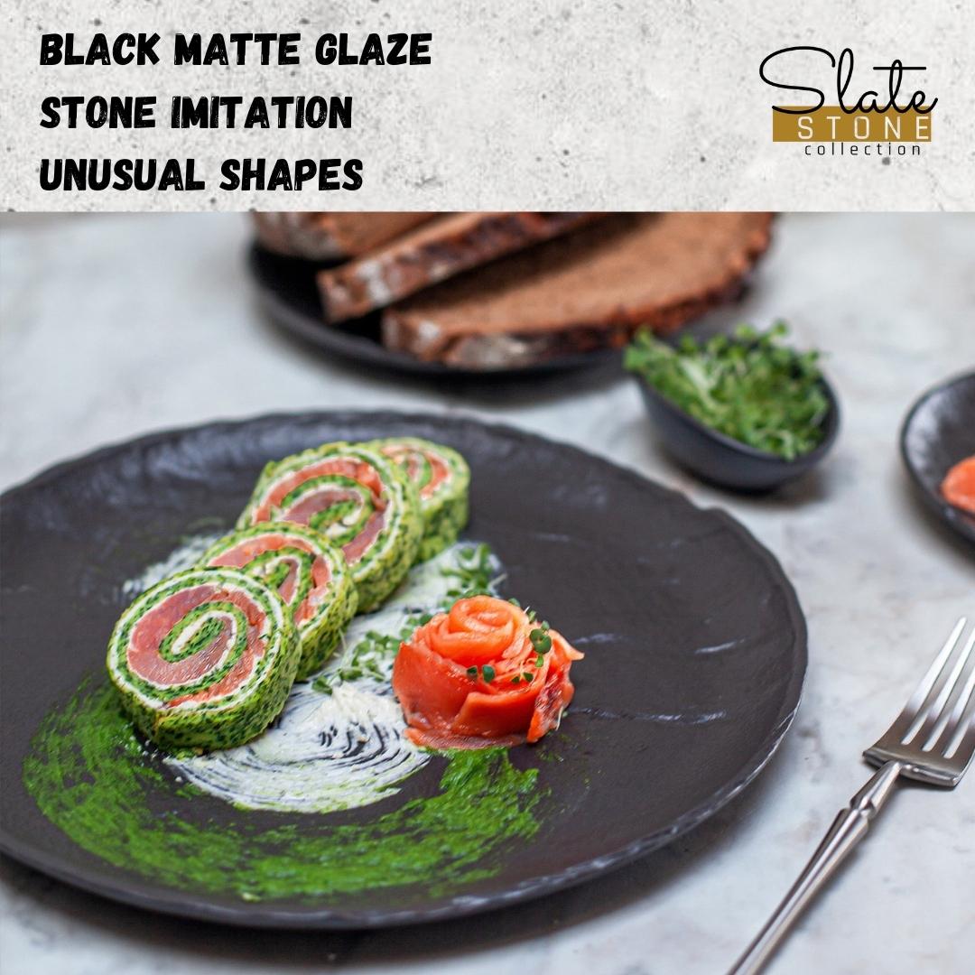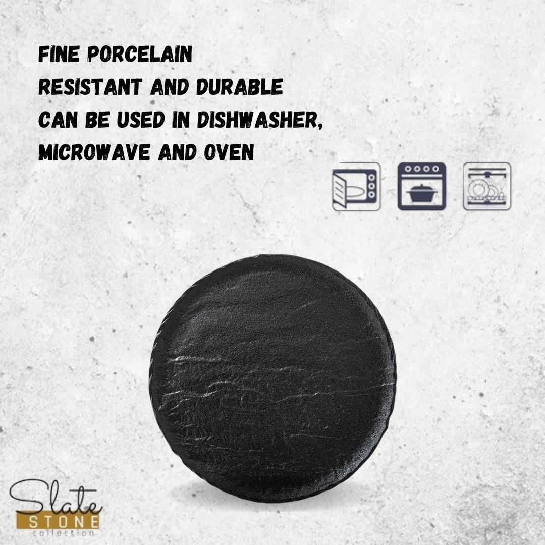 Die Wilmax Round Platter aus der SlateStone Kollektion kombiniert natürliche Ästhetik mit moderner Funktionalität. Mit ihrer schwarzen Schieferoptik und einer Größe von 30 cm ist diese Servierplatte ideal, um Speisen stilvoll zu präsentieren.