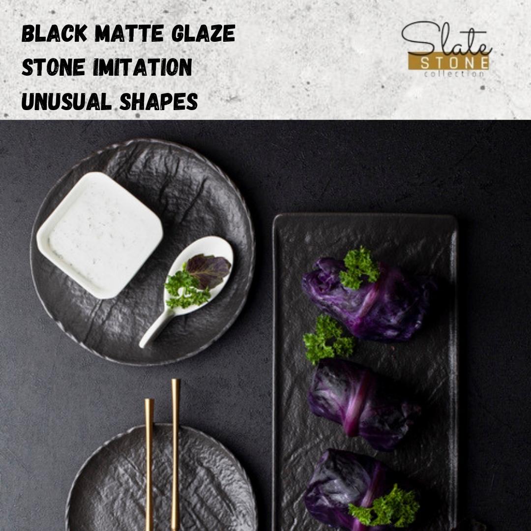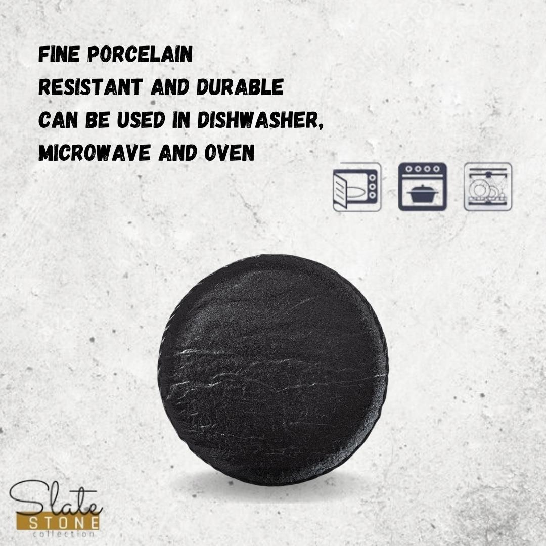 - Hochwertige schwarze Porzellanplatte im natürlichen, rustikalen Stil