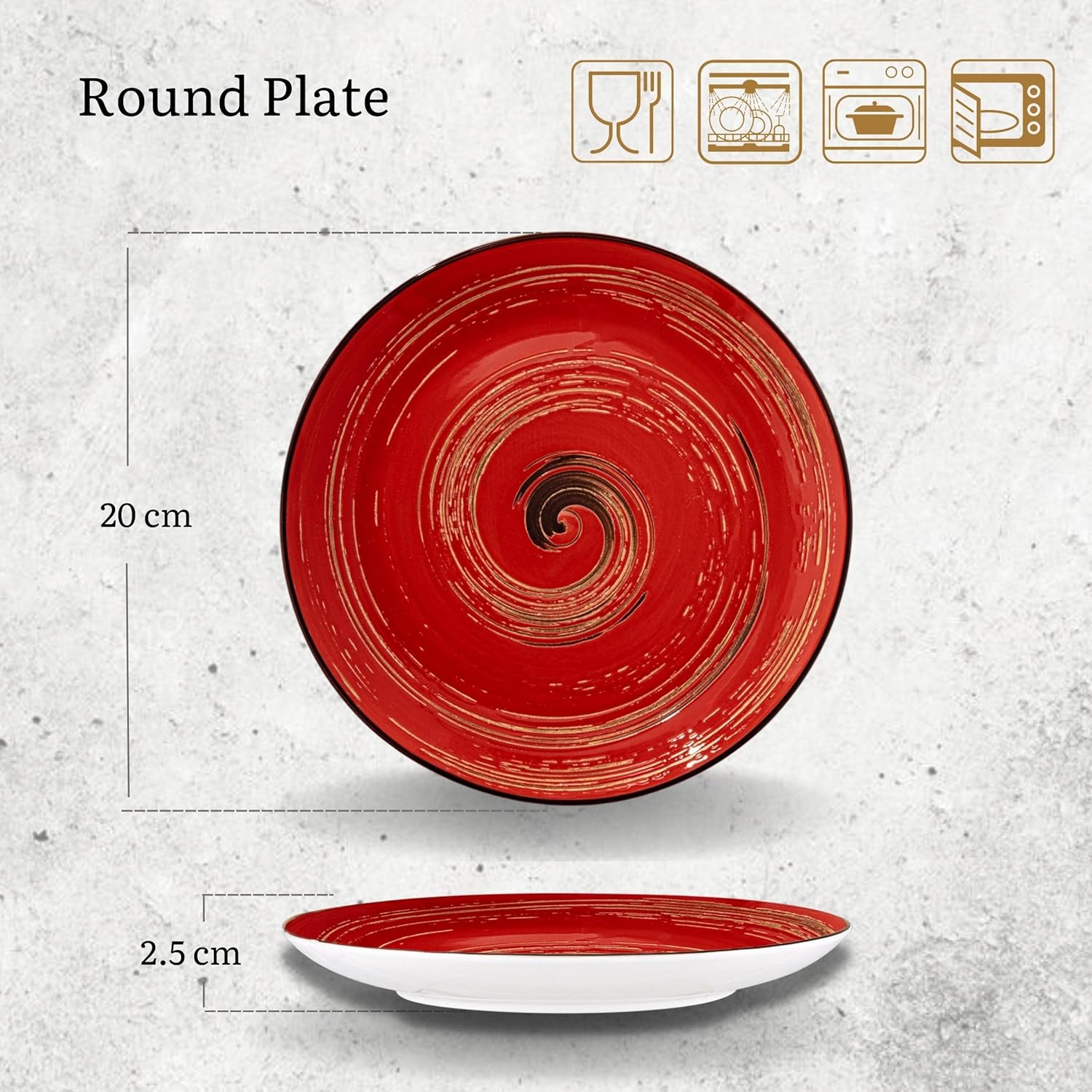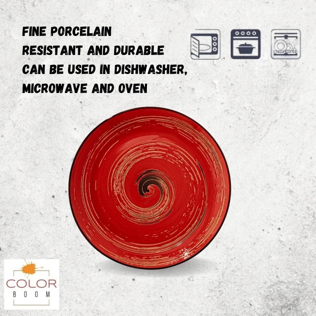 Ja, das Spiral-Design und die roten Teller passen perfekt zu anderen Farben aus der Kollektion oder zu schlichten weißen Tellern.