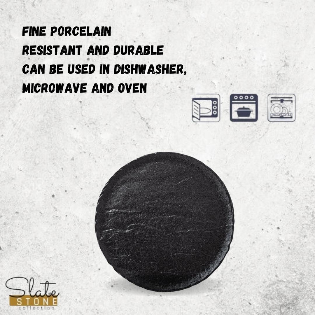 Die Wilmax Porzellanteller WL-661127/A2 aus der SlateStone Kollektion verbinden modernes Design mit einer natürlichen, rustikalen Optik. Das tiefschwarze Porzellan sorgt für einen stilvollen Kontrast zu Ihren Gerichten und hebt Farben sowie Texturen auf einzigartige Weise hervor.