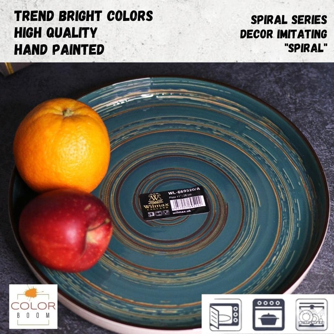 Der Wilmax runde Speiseteller aus der Color Boom Kollektion besticht durch ein frisches, zeitgenössisches Design. Die Spiral Collection mit ihrer lebendigen Farbgebung verleiht jedem Tisch ein modernes Flair.