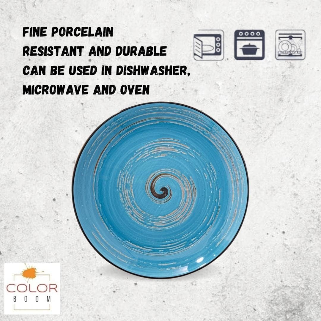 Dieser runde Teller von Wilmax aus der Spiral-Kollektion bringt Farbe auf den Tisch und kombiniert Stil mit Funktionalität. Die hochwertige Glasur sorgt für eine glänzende Oberfläche, die sich leicht reinigen lässt und beständig gegen Kratzer und Abnutzung ist. Er eignet sich sowohl für den Alltag als auch für besondere Anlässe.