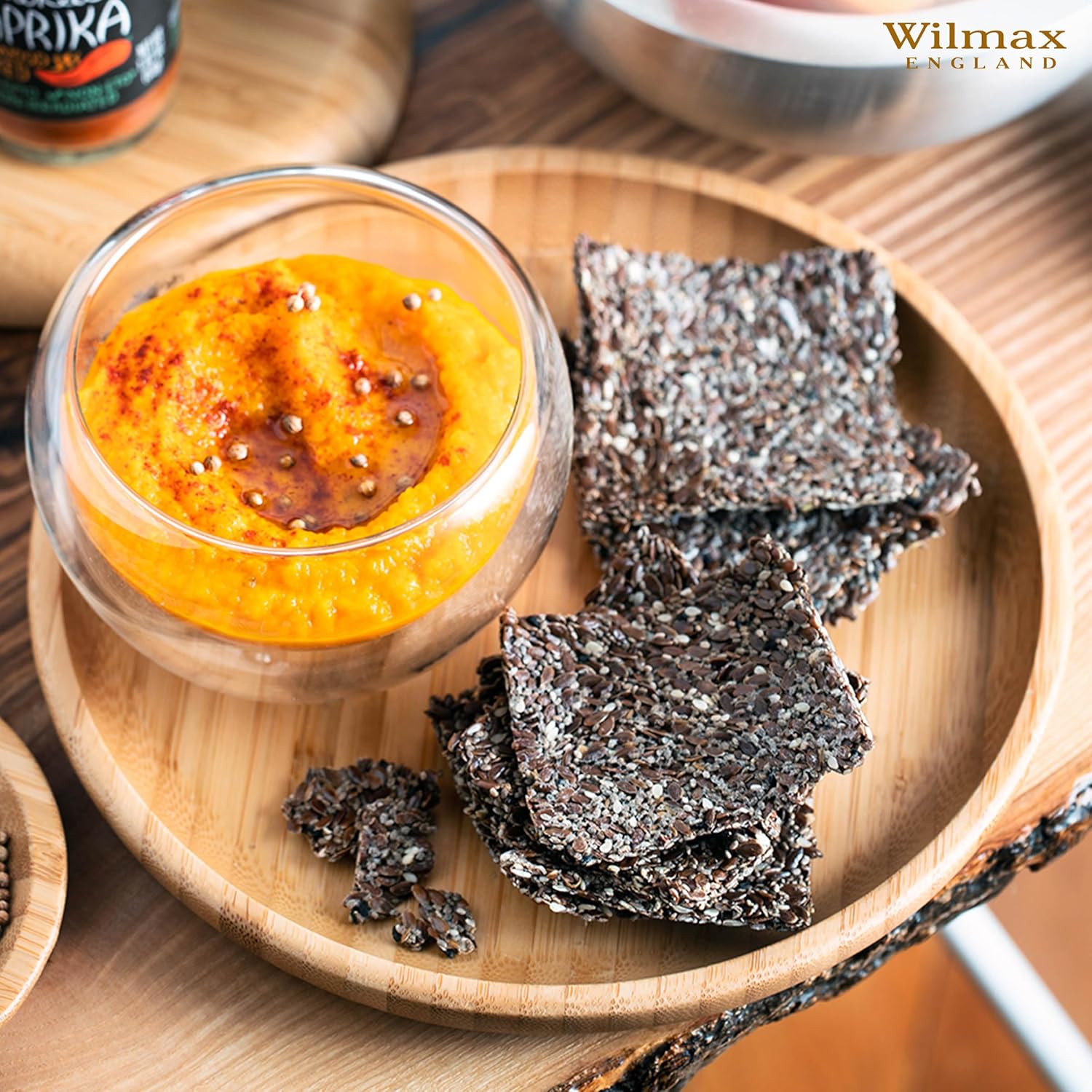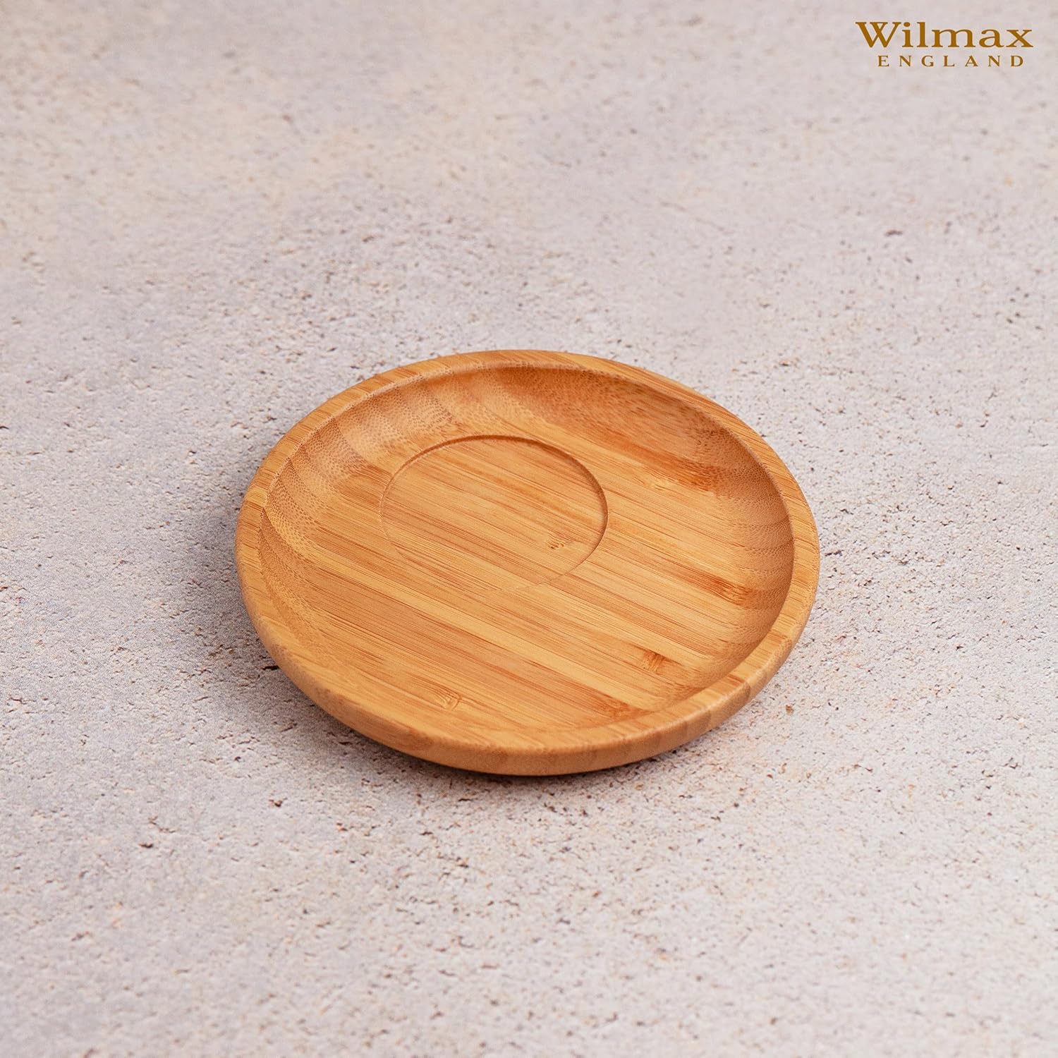 Dieses Wilmax Servierset vereint die natürliche Eleganz von Bambus mit klassischem weißen Porzellan.