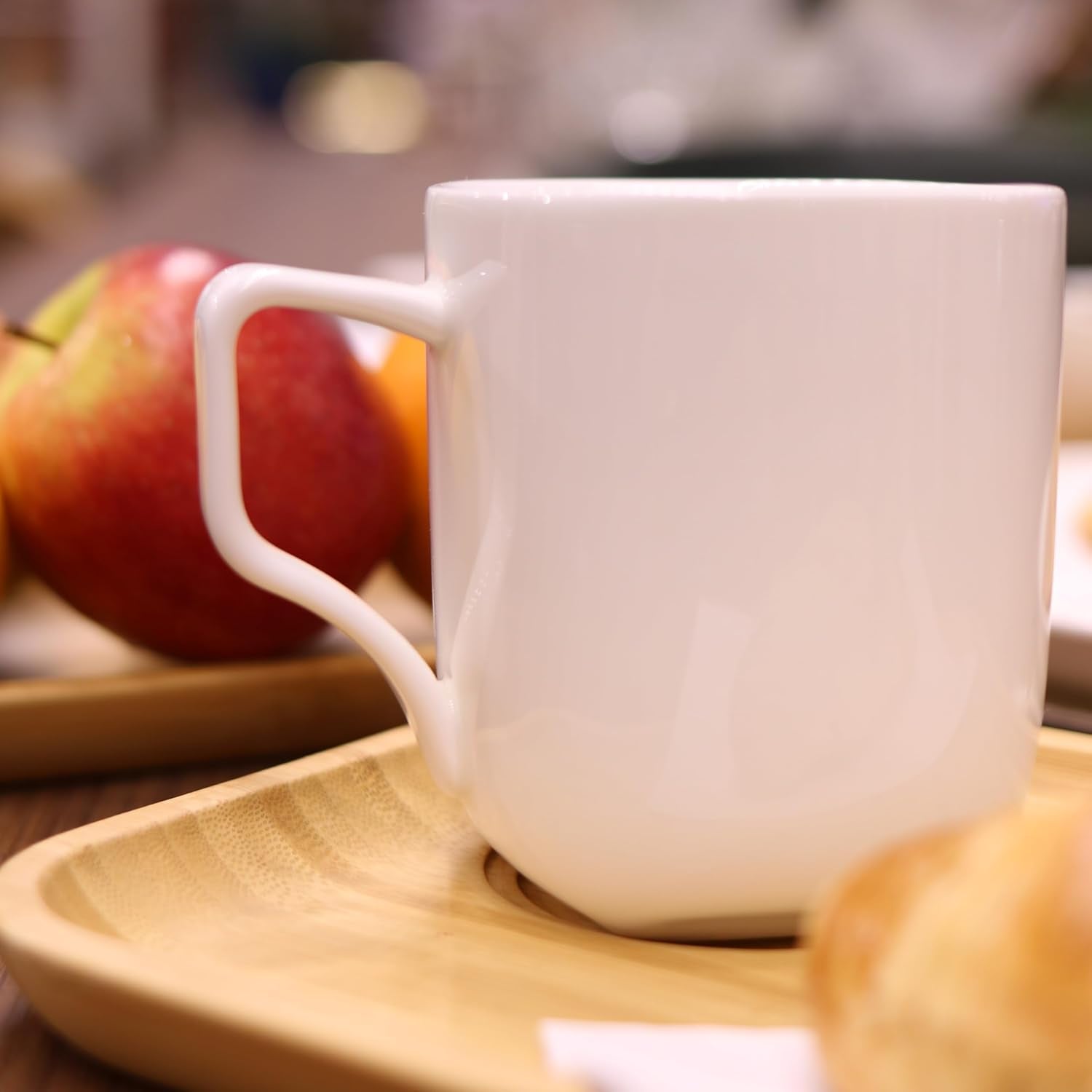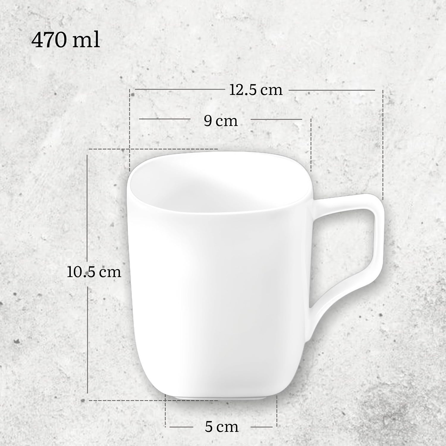 Die Porzellanbecher mit 470 ml Fassungsvermögen sind hochwertig glasiert, kratzfest und ideal für Heißgetränke wie Kaffee oder Tee.