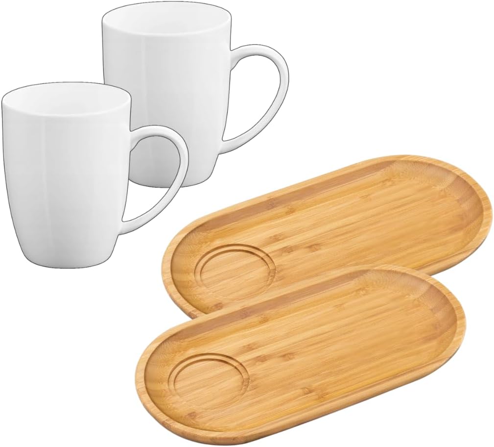 Wilmax Servierset 2x Bambus-Teller & Porzellanbecher  WL-771119/2A-WL-993018/2A