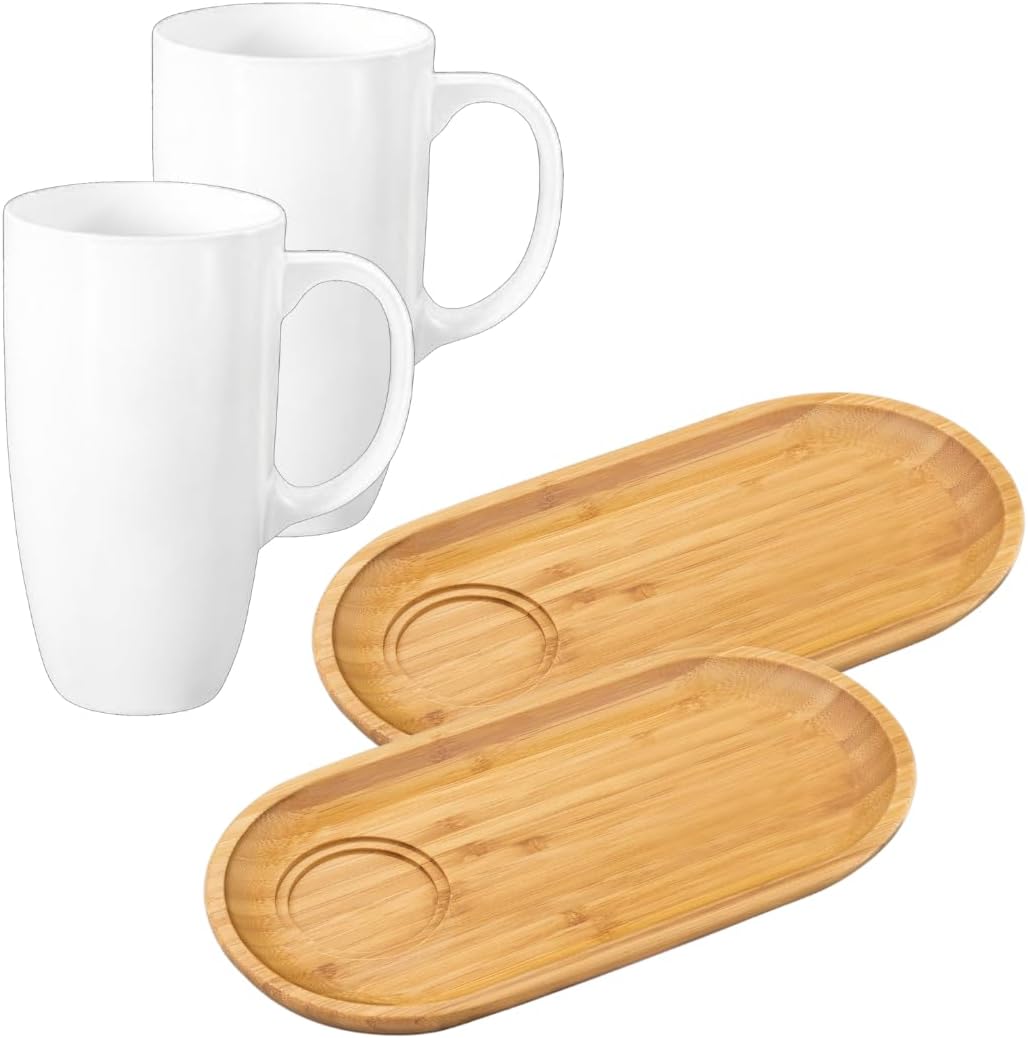 Die Porzellanbecher (630 ml) sind hochwertig glasiert, kratzfest und perfekt für Heißgetränke wie Kaffee oder Tee geeignet.