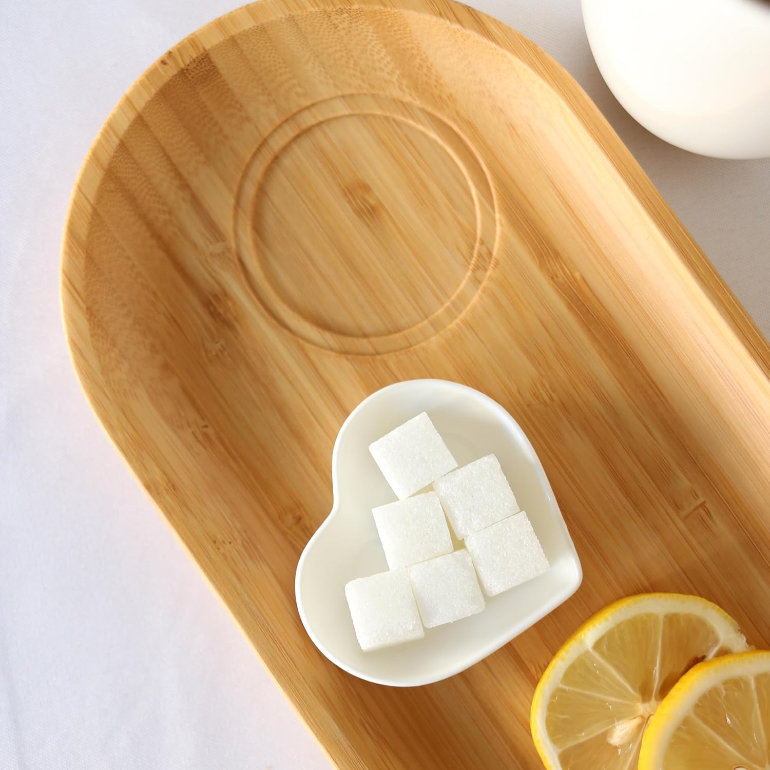 Das Wilmax Servierset kombiniert Naturbambus mit klassischem weißen Porzellan und vereint so Stil und Funktionalität. Die rechteckigen Bambus-Teller sind langlebig, nachhaltig und ideal zum Anrichten von Vorspeisen, Snacks oder Desserts.