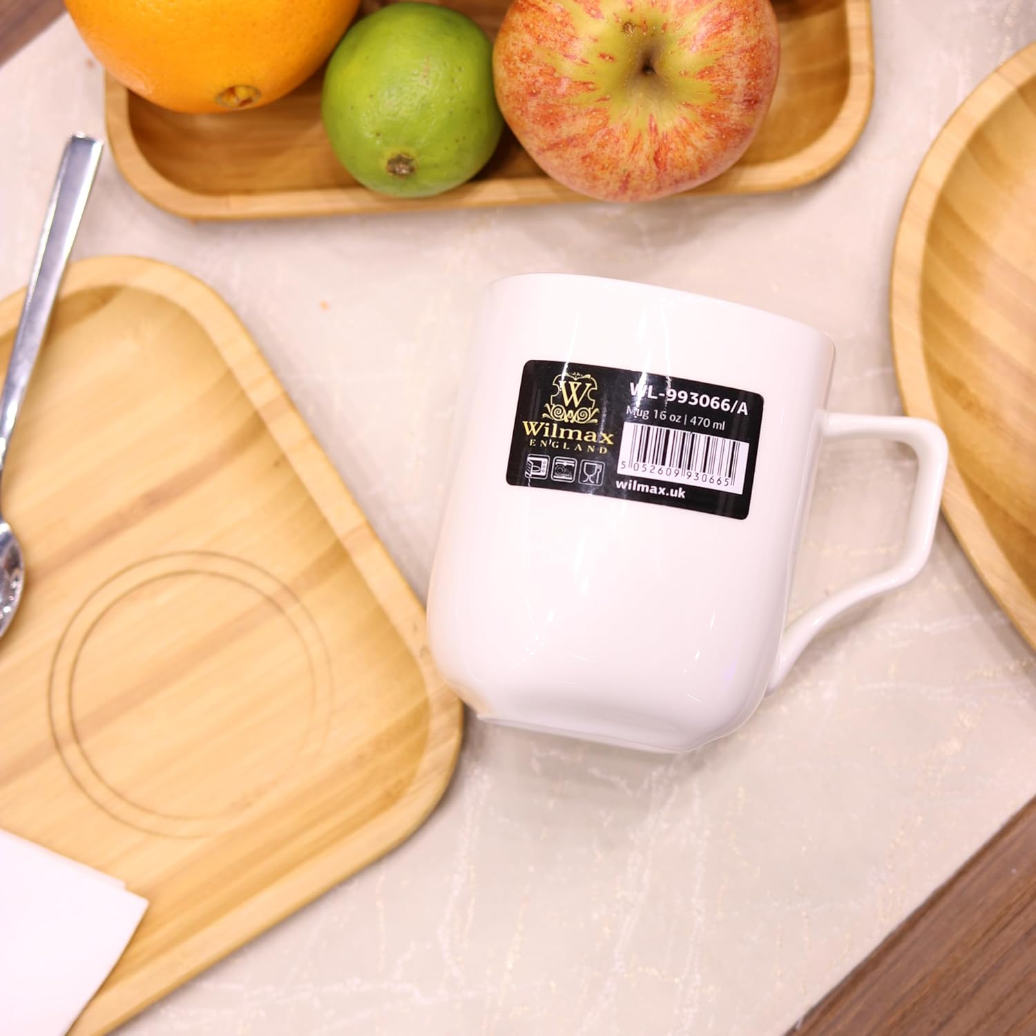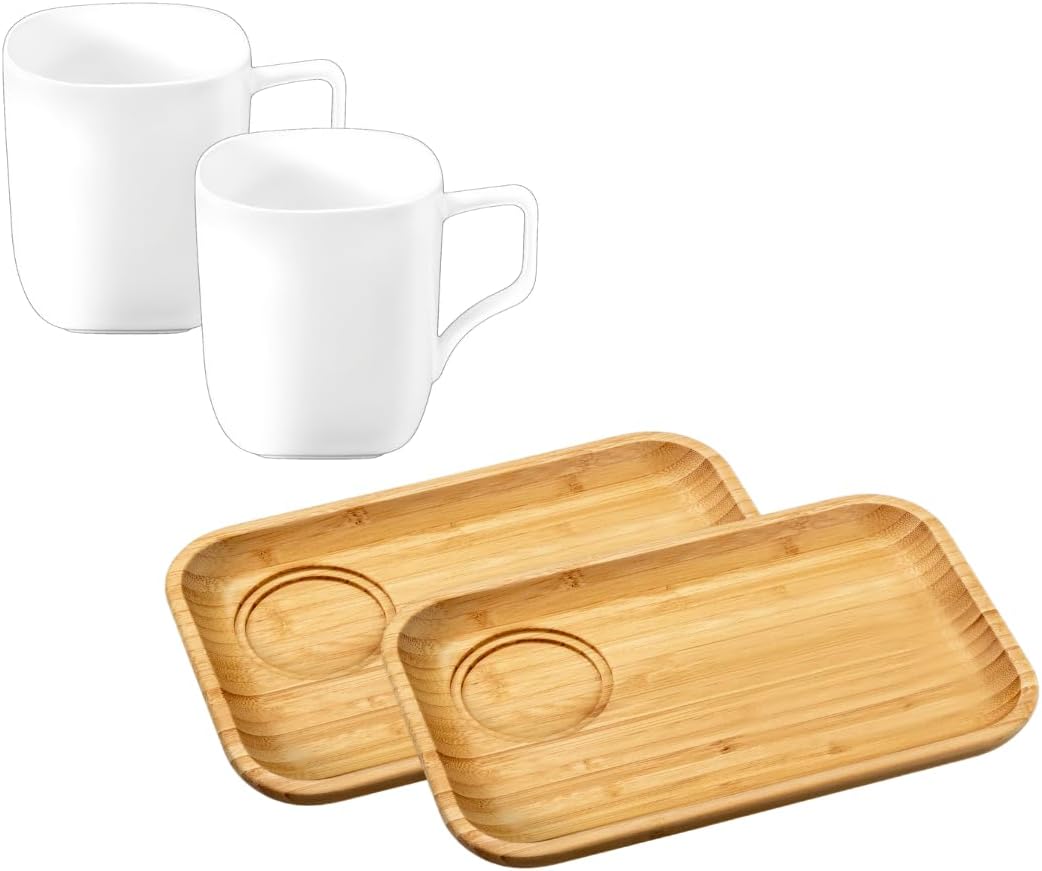 Dieses stilvolle Wilmax Set kombiniert natürliches Bambus mit klassischem Porzellan in harmonischer Form. Zwei rechteckige Bambus-Teller (28 × 17.5 cm) und zwei weiße Porzellantassen mit 470 ml Volumen bilden ein elegantes Servierset – ideal für Heißgetränke und kleine Speisen.