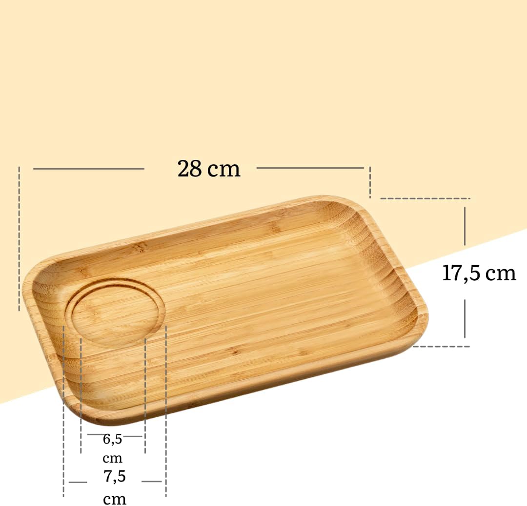 Set-Inhalt: 2x Bambus-Teller (28 × 17.5 cm), 2x Porzellantasse (470 ml)
