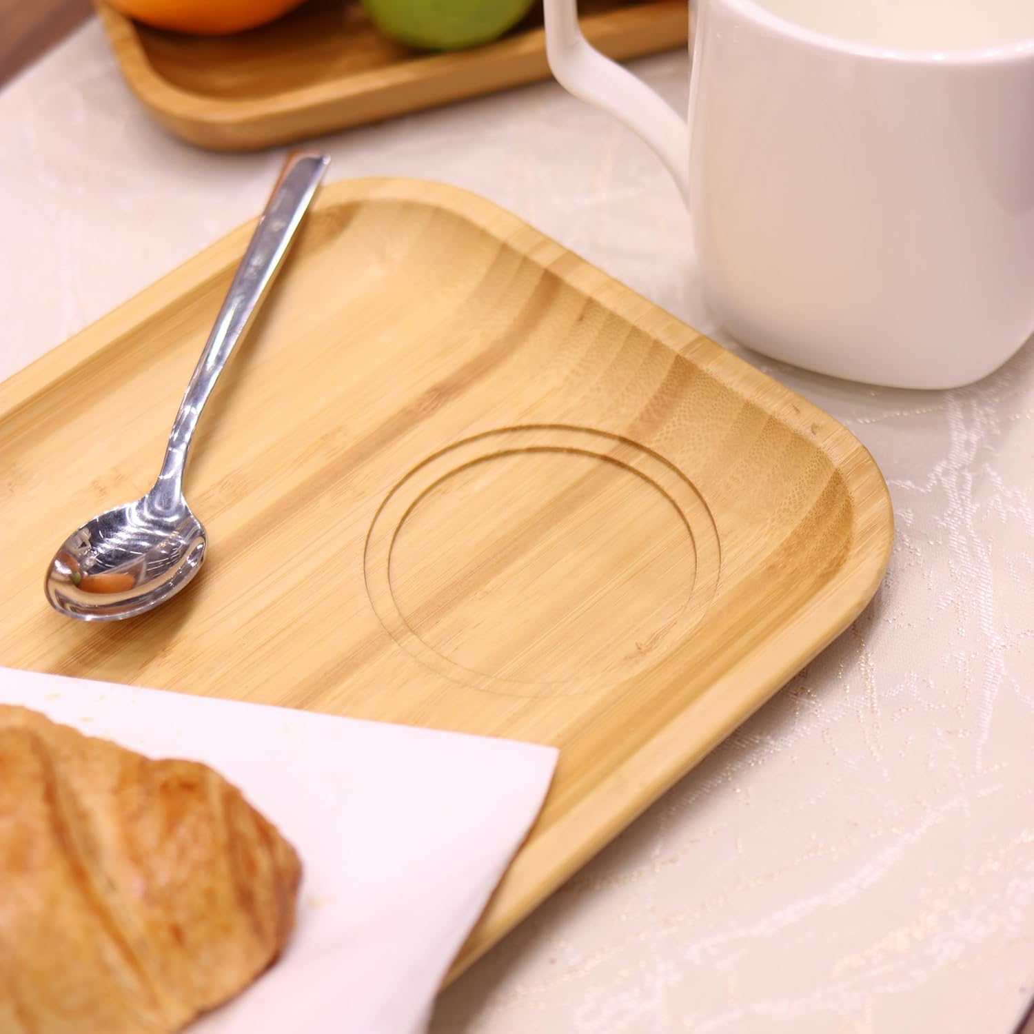 Ja, die Bambusteller eignen sich auch einzeln hervorragend zum Servieren von Gebäck oder Häppchen.