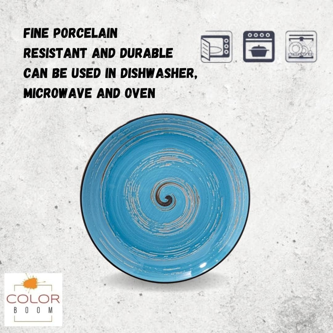 Wilmax Spiral Teller 6er Set aus Porzellan, 20 cm, Blau – WL-669612/A6