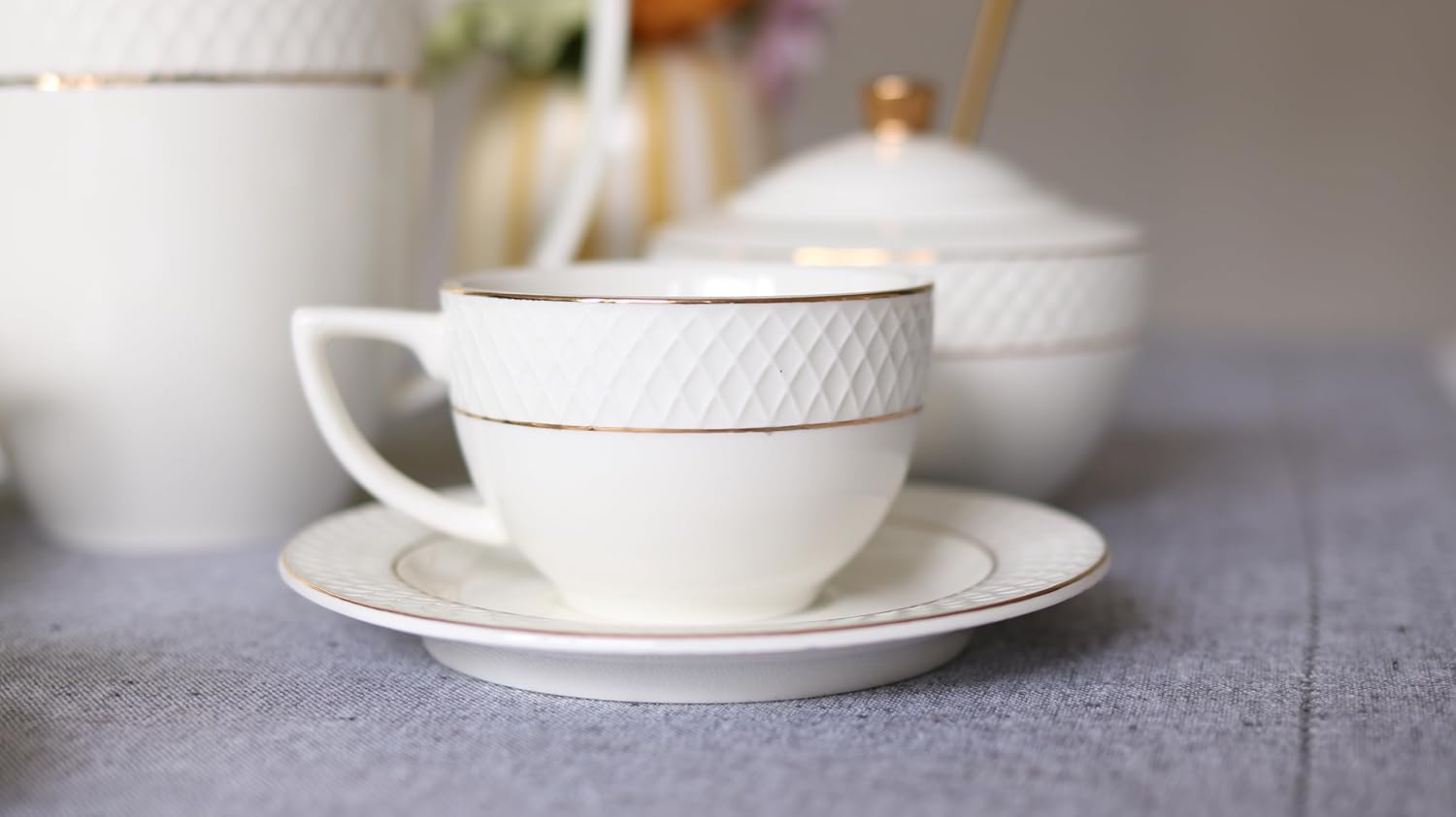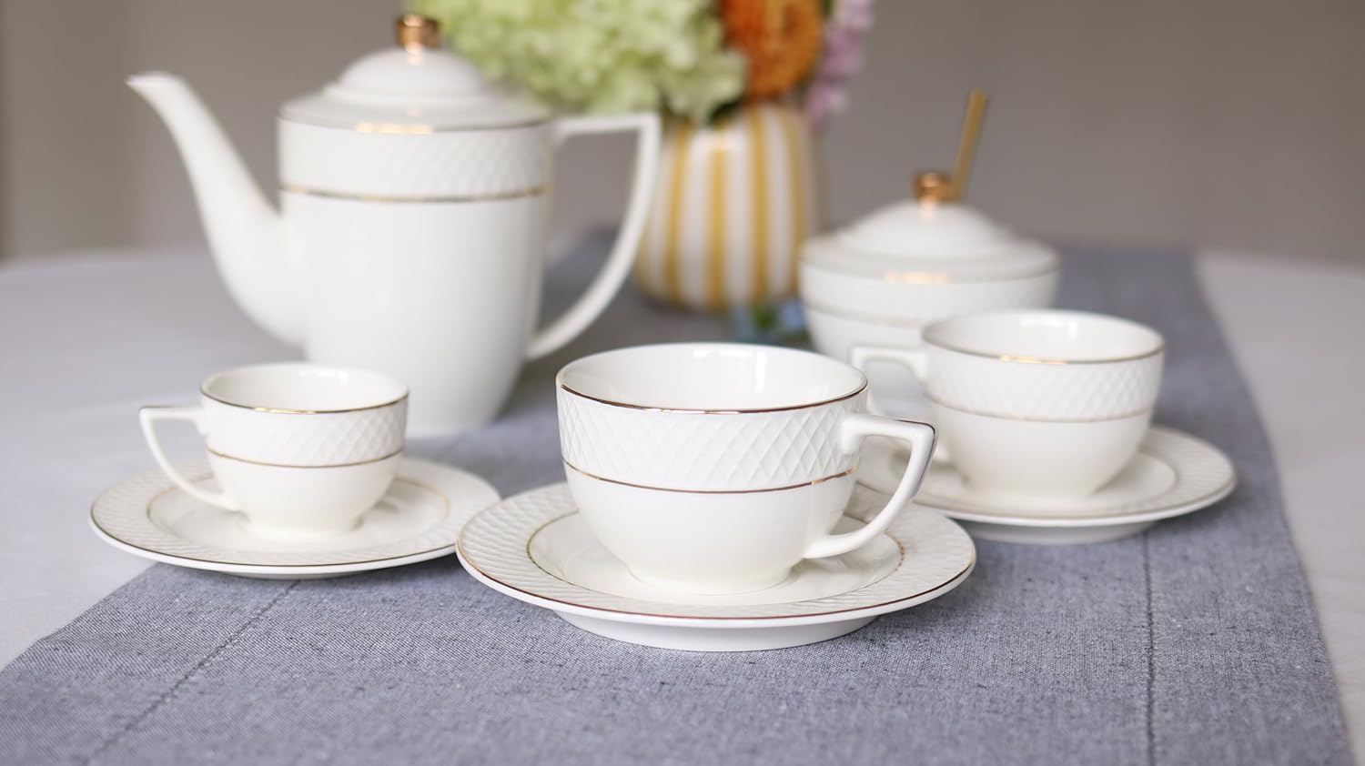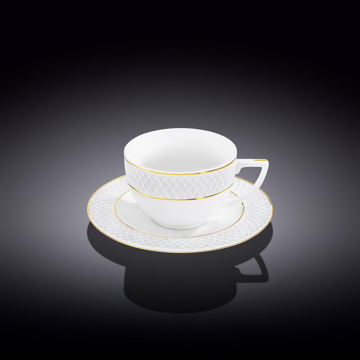 Wilmax Teetassen & Untertassen Set mit Goldlinien, 240 ml, 2er, WL-880102404/AB2