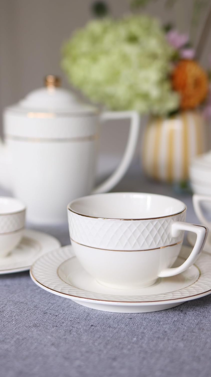 Die Tassen haben ein Fassungsvermögen von 240 ml, perfekt für Tee oder Kaffee. Gefertigt aus hochwertigem, langlebigem Porzellan, sind sie spülmaschinengeeignet und können in der Mikrowelle verwendet werden (ausgenommen Goldverzierungen).