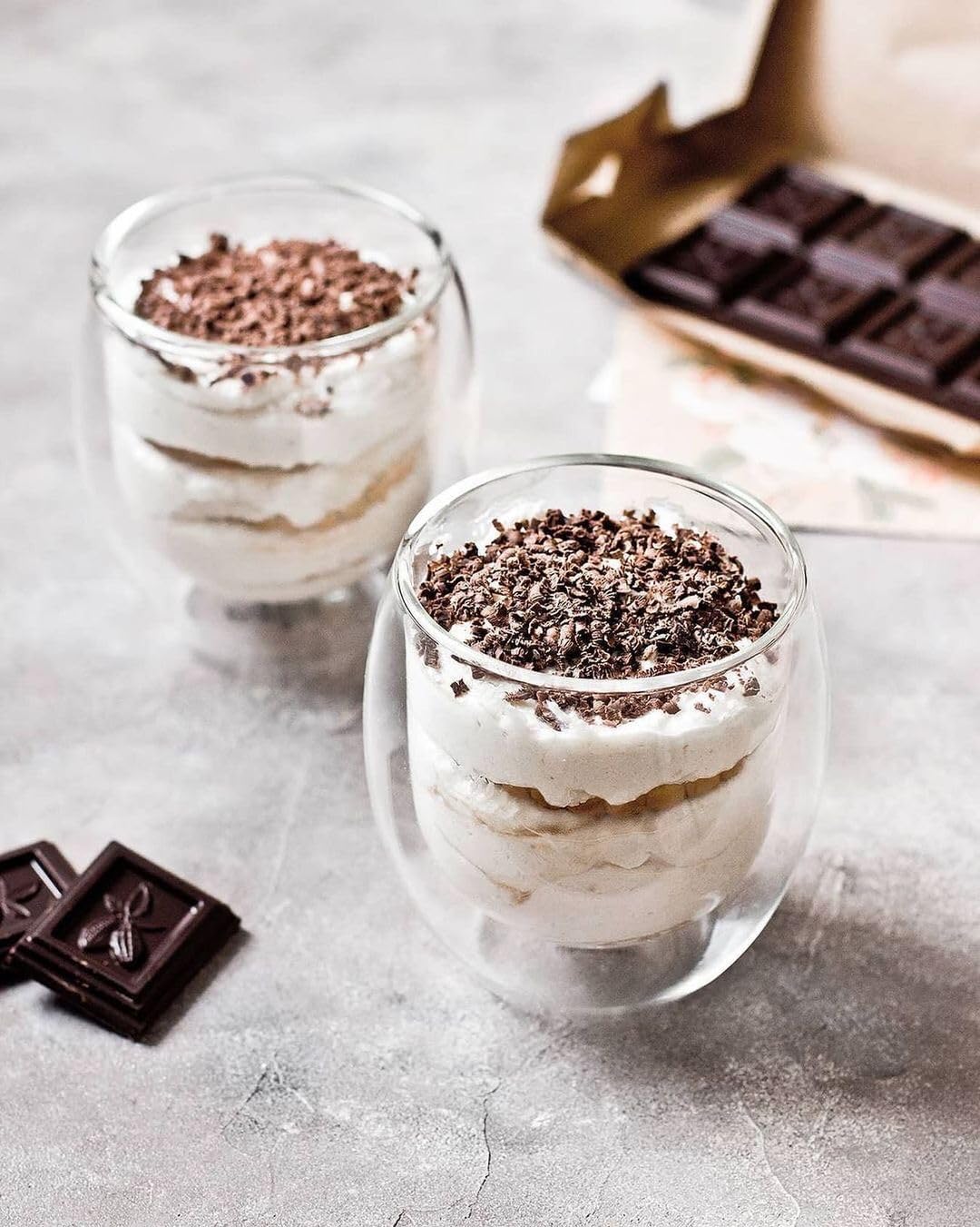 - Zwei doppelwandige Gläser (250 ml) – isolierendes Design hält Getränke länger warm oder kühl