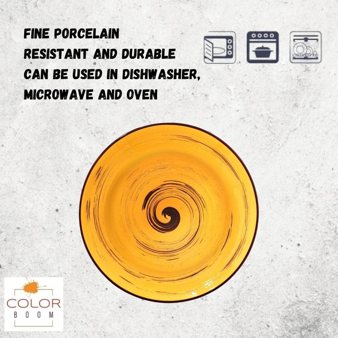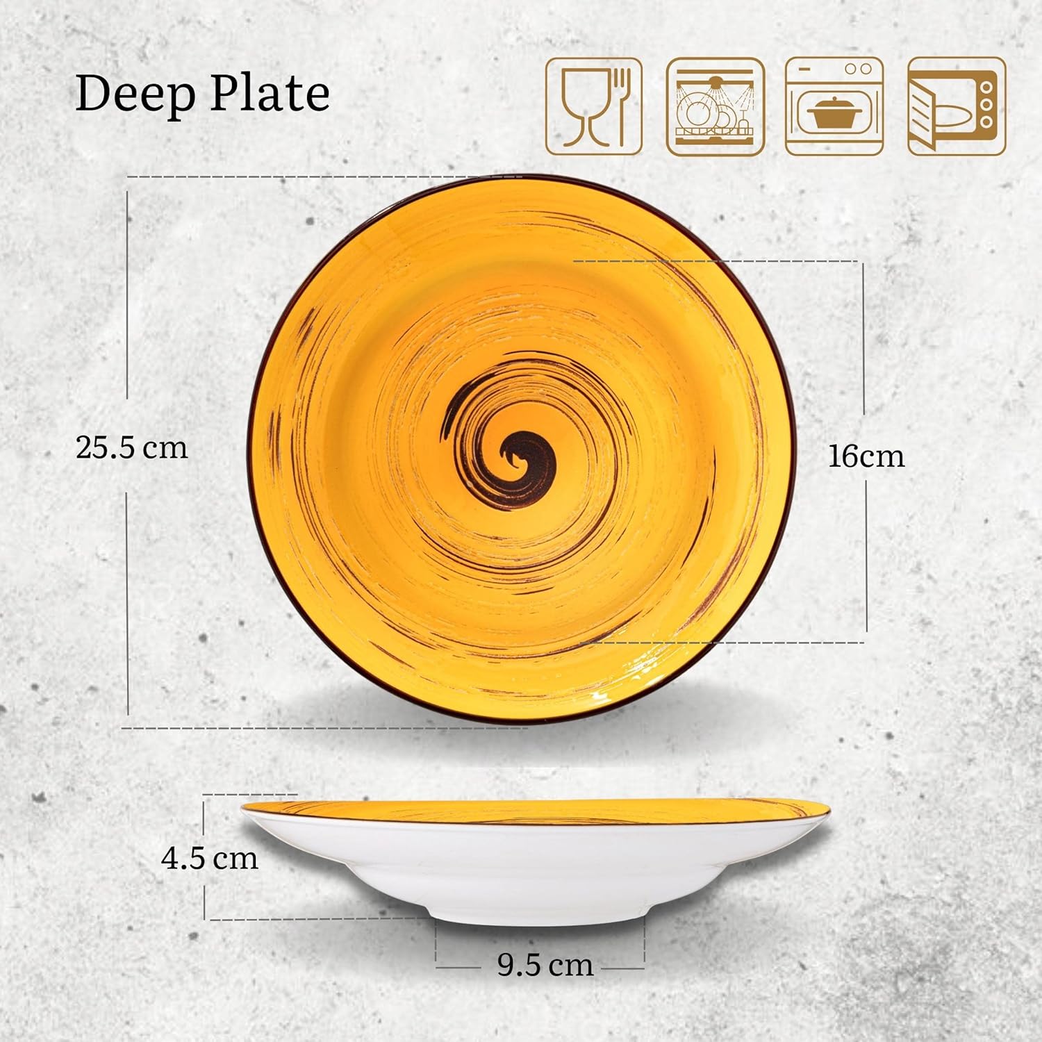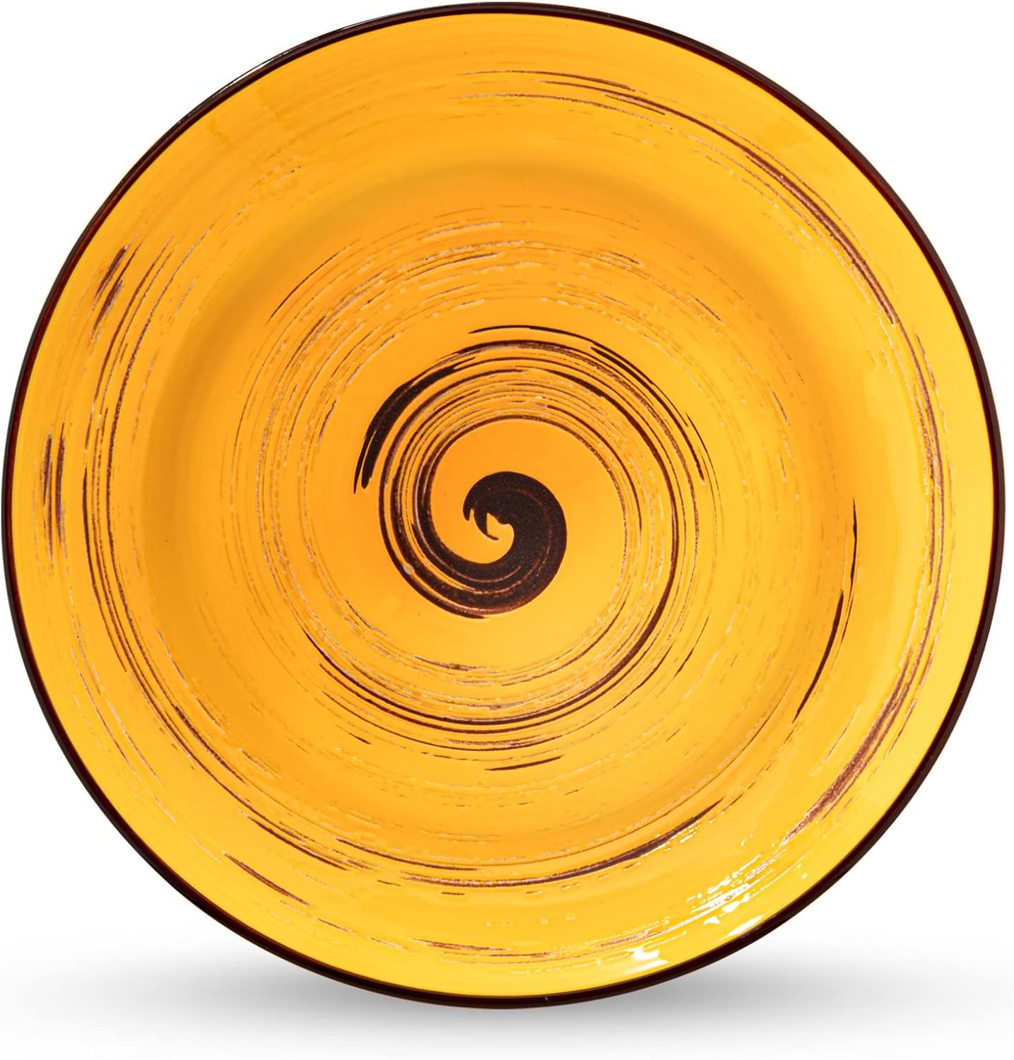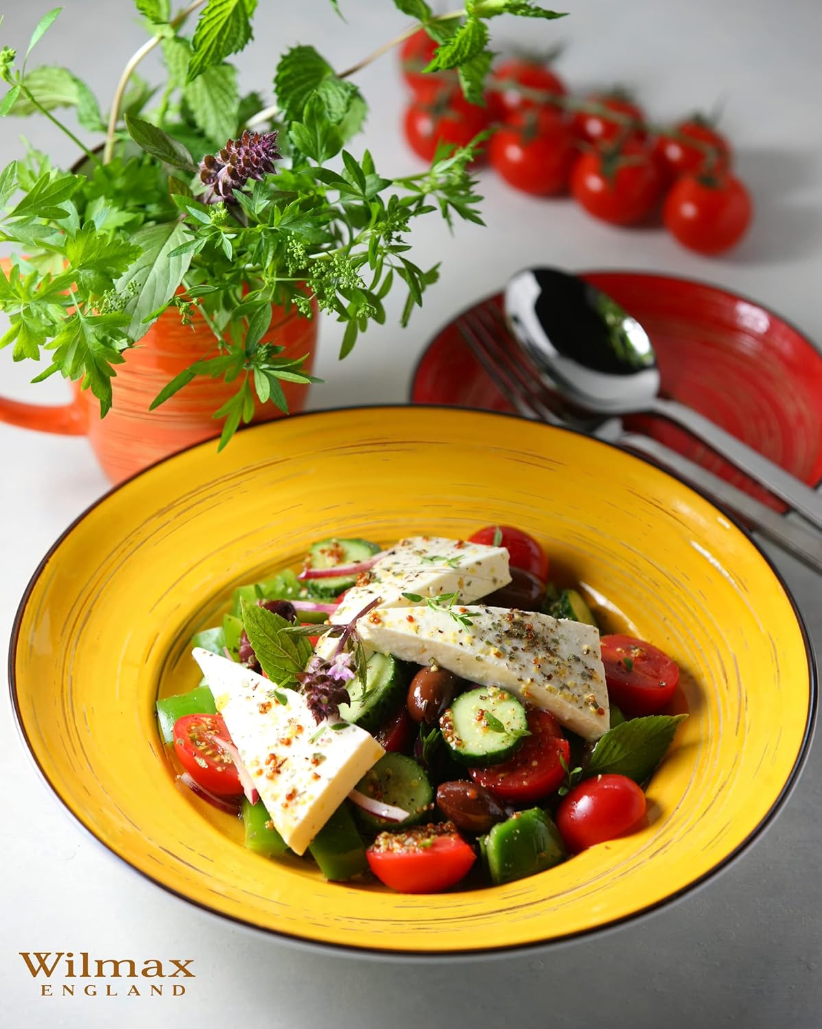 Der Wilmax Tiefe Porzellanteller besticht durch seine leuchtend gelbe Farbe und hochwertige Verarbeitung. Mit einem Durchmesser von 25,5 cm und einer Kapazität von 350 ml eignet er sich hervorragend für Suppen, Salate und andere Gerichte.
