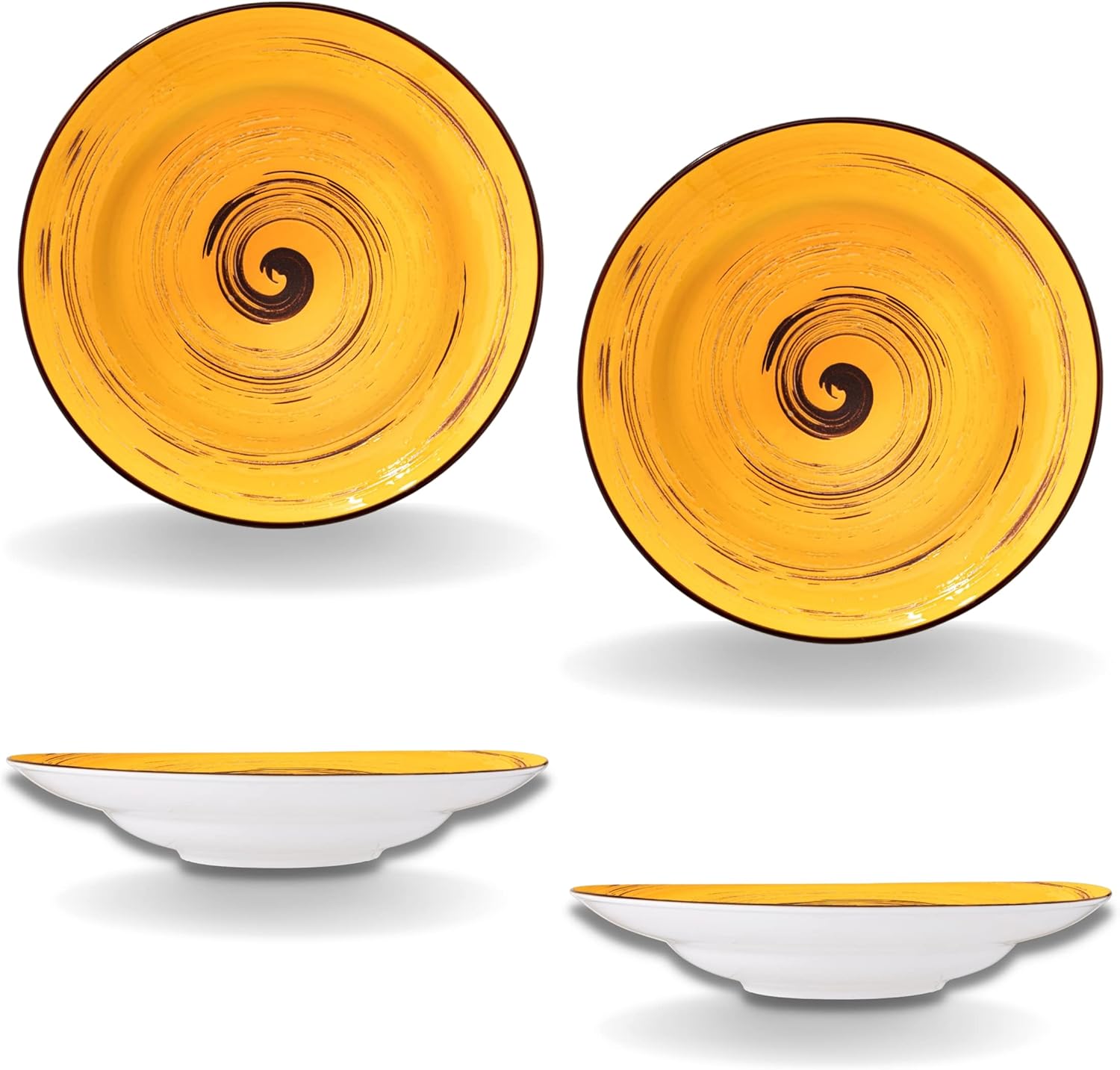 - 2x Wilmax Tiefer Porzellanteller 350 ml, Gelb, Ø 25,5 cm