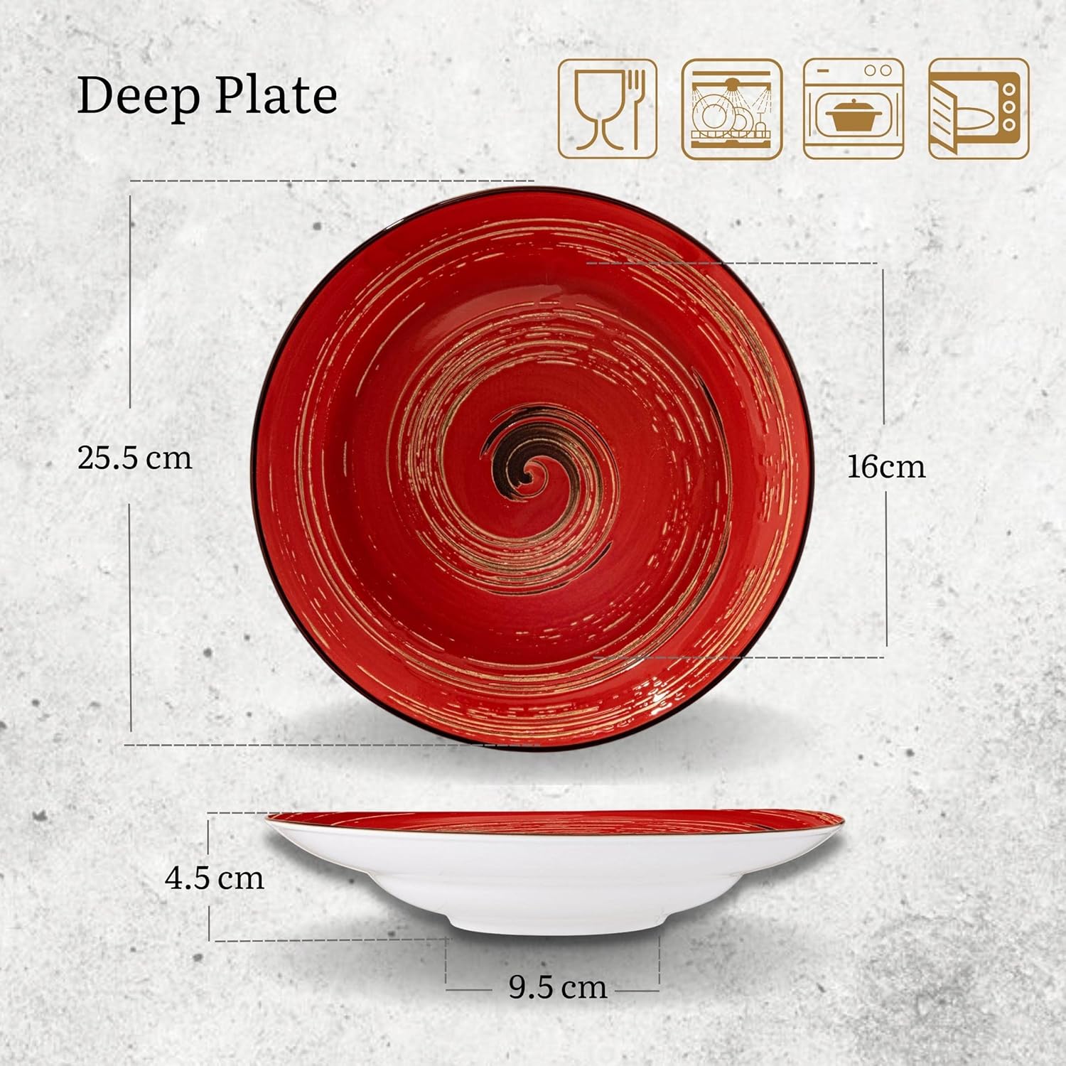 Wilmax Tiefer Porzellanteller Rot, 25,5 cm, 350 ml – WL-669227/A