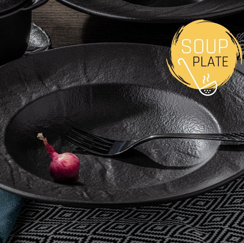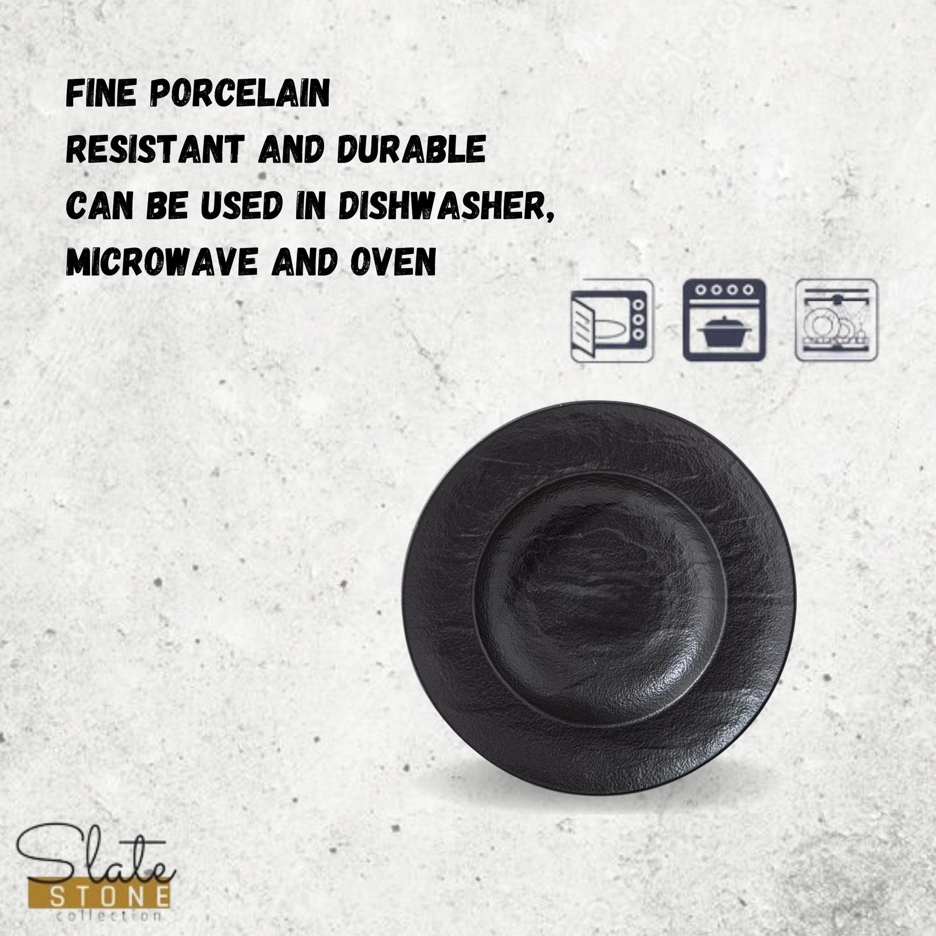 Hergestellt aus robustem Fine Porcelain, überzeugen die Teller durch ihr elegantes Design und ihre Langlebigkeit. Die schieferartige Optik verleiht jedem gedeckten Tisch eine einzigartige Note. Ideal für Suppen, Pasta oder Salate – diese Teller sind vielseitig einsetzbar und heben Ihre Speisen stilvoll hervor.